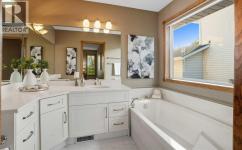 OPEN HOUSE SATURDAY, Nov 8th, 10-Noon.This beautifully updated bungalow in Bow Meadows perfectly blends comfort, style, and a serene natural setting. Soaring lofted ceilings with a skylight fill the main level with sunlight, complementing the warm maple hardwood floors and open-concept design.The refreshed kitchen features elegant quartz countertops, a modern backsplash, stainless steel appliances, and a corner pantry. The flexible formal dining room can easily serve as a bright office or cozy sitting area.The spacious primary suite includes a renovated ensuite and walk-in closet. Downstairs, the fully developed lower level offers a large recreation room with a second fireplace, a guest bedroom, a 3-piece bath, and a generous flex space that could easily become a 4th bedroom—all while maintaining excellent storage.Step outside to your private backyard oasis with lush landscaping, underground irrigation, mature trees, a Duradeck patio with BBQ gas line, and a hot tub for year-round enjoyment. The oversized double garage impresses with epoxy floors, 10’ ceilings, and a side-mount opener perfect for a car lift.Recent updates include:• Roof (approx. 5 years)• Hot water tank (2022)• Washer & dryer (2 years)Additional highlights: central vacuum, roughed-in water softener, two fireplaces, and peace of mind knowing this property is not located in the flood plain or flood fringe.Located just steps from the Bow River and Jumpingpound Creek pathways, downtown Cochrane, and local schools, this home offers privacy, sunlight, and lifestyle in one of Cochrane’s most sought-after communities. (id:6769)