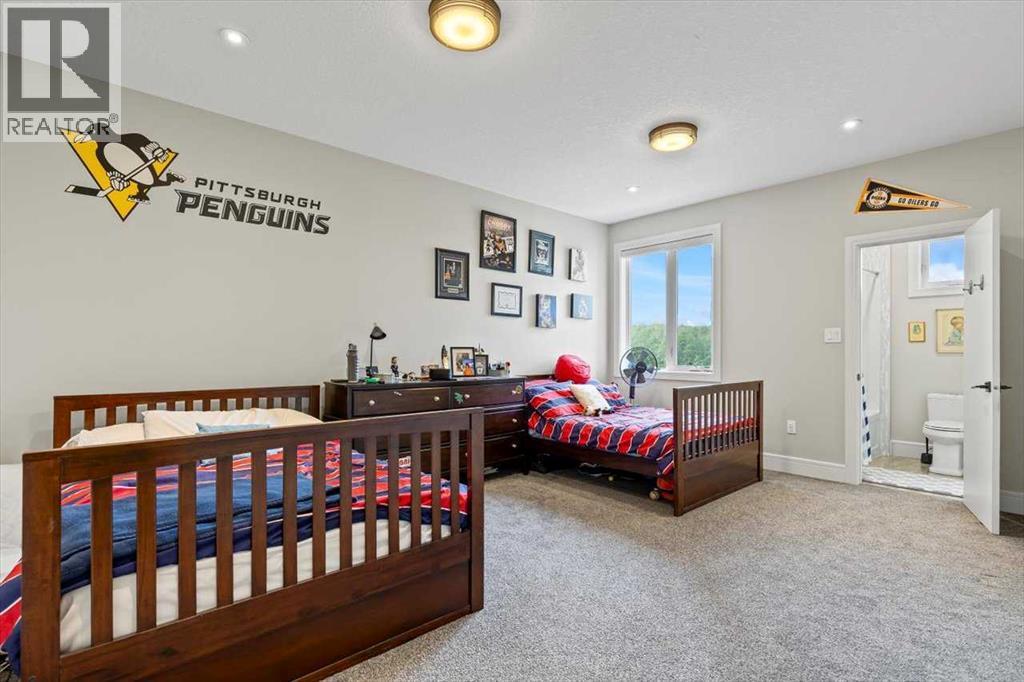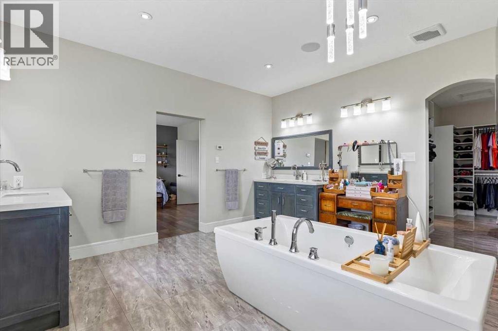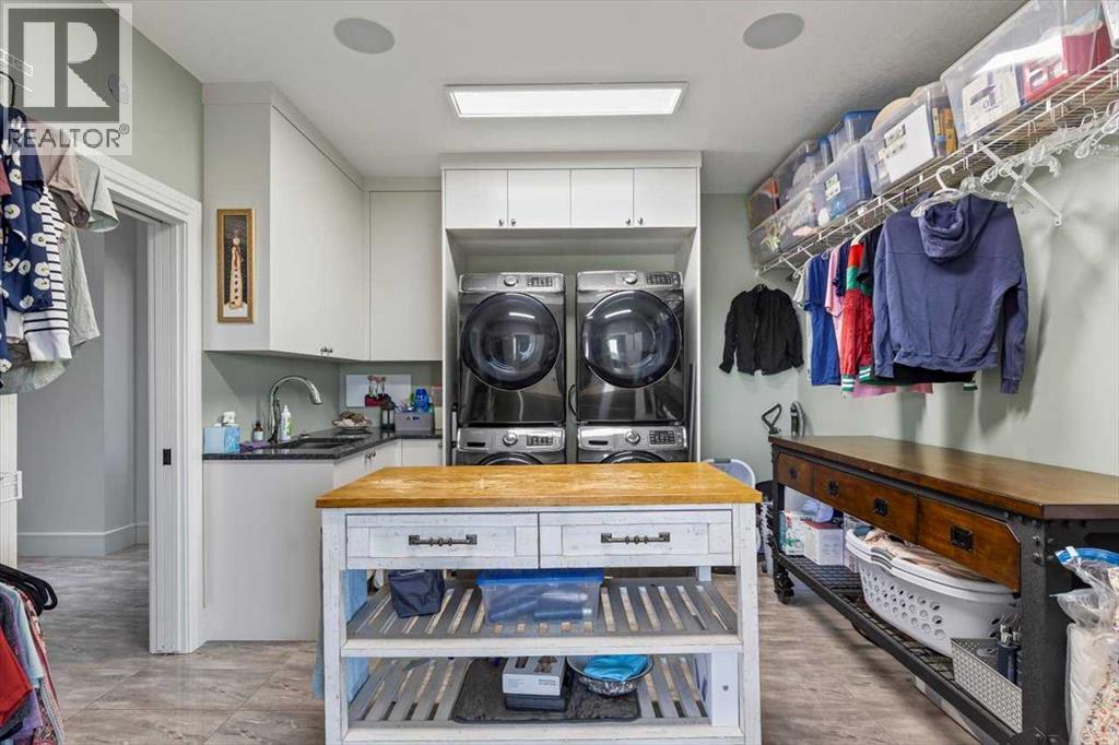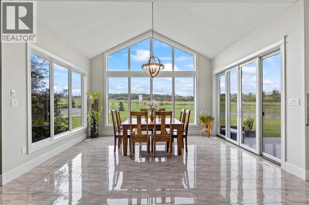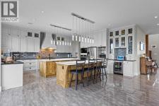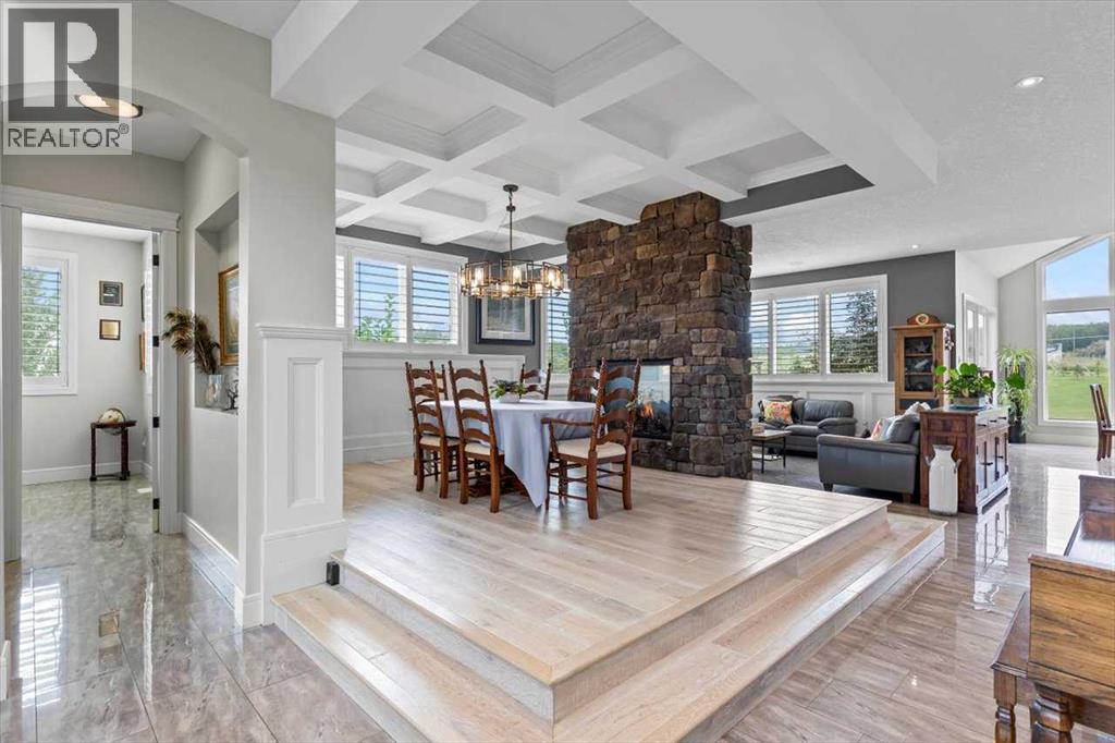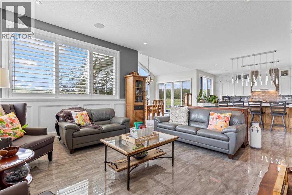 Welcome to an extraordinary CUSTOM-BUILT estate where functional luxury and privacy meet in perfect harmony. Set on 3.12 acres at the end of a quiet cul-de-sac with no neighbours behind, this residence offers more than 7,000 sqft of impeccably designed living space across three levels and a seamless balance of serene country living with city convenience. As you step inside the foyer, the 20-foot ceilings might be the last thing you notice as the adjacent awe-inspiring floating Alderwood staircase immediately grabs your attention and sets a tone of refined craftsmanship. While still standing in the foyer, the open concept design allows you to look past the raised dining room with coffered ceiling, double-sided stone fireplace and living room into the nook with its own 14-foot vaulted ceiling and a panoramic view of the backyard. The gourmet kitchen is a chef’s dream that features floor-to-ceiling custom cabinetry, double 8-foot Knotty Alder Islands, Jenn-Air Professional 36” Dual Fuel 6-Burner Range & Jenn-Air Professional Convection Wall Oven, 40” Native Trails Copper Farmhouse sink, and the striking combination of quartz and leathered granite countertops provides seemingly endless counter space. The main floor also includes a private office ideal for working from home, along with two mudrooms that provide entrance into the home from both heated garages. This magnificent home includes 8 BEDROOMS (each with its walk-in closet) and 7.5 BATHS (in total) with a fully developed basement. Upstairs, you'll find six bedrooms, including the luxurious primary retreat with an oversized walk-in closet and a beautifully appointed ensuite, along with five bedrooms. There is room for extended family or multi-generational living. The fully finished basement boasts a massive recreation room/games room, two spacious bedrooms and storage. Comfort and efficiency are paramount with in-floor radiant heating, built-in multi-zone sound system and instant hot water throughout the house. The home comes equipped with water treatment, a dedicated sports room, ample storage and even three washers and three dryers to keep pace with an active lifestyle. Enjoy outdoor living at its finest with a large front veranda, a private gazebo surrounded by maturing trees, a firepit / BBQ area, and stunning views of the Calgary Skyline. There is room for your RV, complete with full RV hookups, along with ample parking spaces for more cars than you can imagine. The property is just outside of Okotoks corporate limits (500m), offering you the choice of public and Catholic schools within 5 minutes or private schools less than 10 minutes away from the house. This premium property delivers unrivalled space, privacy and craftsmanship making it a rare offering, add in its ideal location, it’s a one of a kind offering on the market today! (id:6769)