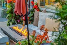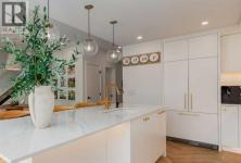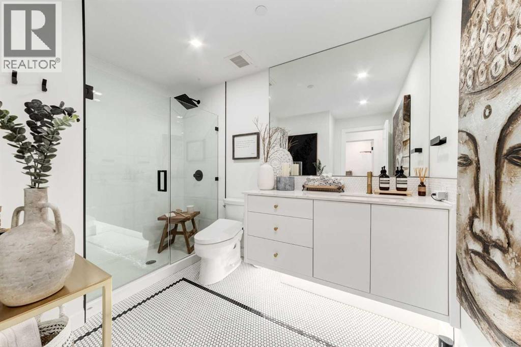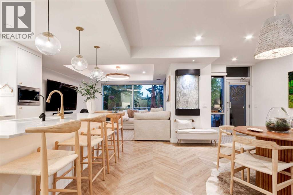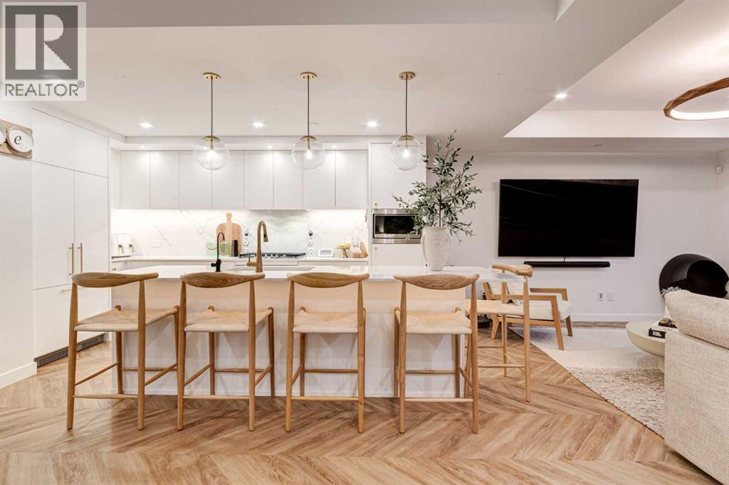 OPEN HOUSE SATURDAY, OCTOBER 4TH, FROM 12PM TO 2PM. Experience luxury living in a sophisticated THREE BEDROOM Brownstone residence with over 2000 SF of interior living space and over 500SF of outdoor garden terrace space. Designed with both privacy and entertaining in mind, the home boasts upper-level south-facing bedrooms with large mature trees set behind, a dedicated gym area, a south-facing patio with room for an outdoor living room and an upper level deck, perfect for relaxation or gatherings. The chef-inspired kitchen is a true centerpiece, featuring Supermatte slate white cabinetry with brushed-gold hardware, a high-end gas cooktop and wall oven, an integrated 36" Fisher & Paykel fridge, integrated dishwasher, soft-close drawers, under-cabinet lighting, and stunning quartz countertops and backsplash. The dining room is open to the kitchen and cozy living room area. The interior design is spectacular featuring a Nordic-inspired floating fireplace, Chevron flooring, a bespoke granite waterwall feature, and designer lighting. A spacious walk-in pantry ensures ample storage for all your culinary needs. Modern upgrades include Japanese-style toilets, high-flow rain shower heads, and under-cabinet lighting throughout the kitchen and bathrooms, bringing contemporary elegance to every space. Sunlight fills the home through large windows, complemented by roller shades for privacy. Additional features include a full-size washer and dryer, custom built-in cabinetry, and a patio gas line for effortless outdoor cooking. This exceptional home includes two titled parking stalls in a heated, secured underground parkade, offering convenience and peace of mind. Located just steps from the award-winning eight-acre Radio Park, residents can enjoy a vibrant lakeside destination complete with fountains, boardwalks, scenic overlooks, dog parks, an amphitheatre and lush landscaping. The park is designed to offer year-round activities including a performance venue, winter ice rink , and dining experiences. Residents also benefit from a rooftop patio on the 8th floor, a second floor private owner’s lounge, underground visitor parking, bike storage, EV charging stations, and concierge services. The West District community continues to expand with retail shops, pedestrian-friendly sidewalks, bike paths, a central park, outdoor amphitheater, skatepark, seasonal markets, a transit hub, supermarket, and sports courts. Ideally situated, the home is just 15 minutes to downtown Calgary, one hour to the mountains, and 5 minutes to Winsport Canada Olympic Park, offering an unbeatable combination of lifestyle and convenience. (id:6769)