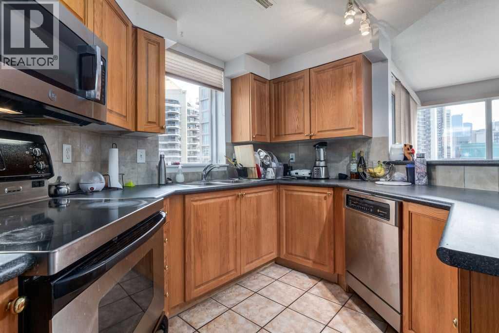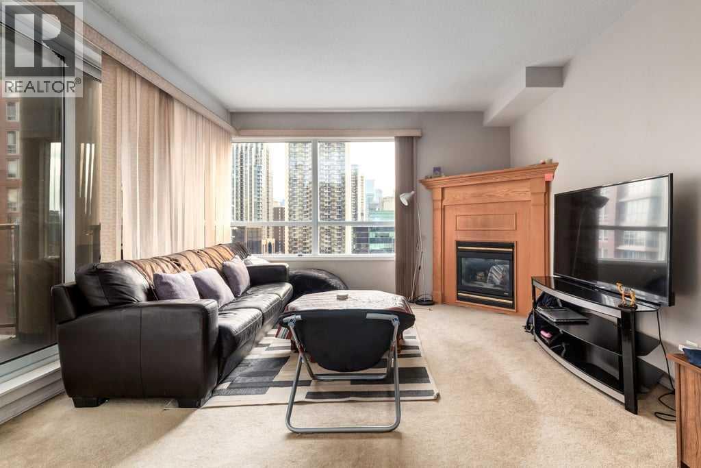 Step into a lifestyle defined by sophistication and convenience in this 747 sq ft condo in the heart of Calgary’s vibrant downtown. Perched on the 13th floor, this residence blends modern design with everyday comfort, offering the perfect balance of function and flair.The open-concept layout is bright and inviting, with large windows that draw in natural light and showcase dynamic city views. A gas fireplace adds warmth and character to the living space, while the kitchen is equipped with stainless steel appliances and a stylish breakfast bar—perfect for morning coffee or relaxed meals at home.The bedroom offers a quiet retreat with a generous walk-in closet, complemented by a versatile den that’s ideal for a home office or personal studio. A sleek bathroom adds to the polished feel, while your private balcony provides a front-row seat to the energy of downtown living.Every detail reflects the best of urban convenience and contemporary design, steps away to the LRT and direct access to the Bow River walkways. From fireside evenings to sunlit mornings on the balcony, this condo is more than a home—it’s a lifestyle upgrade. (id:6769)