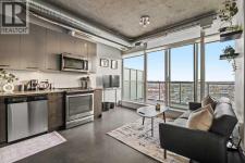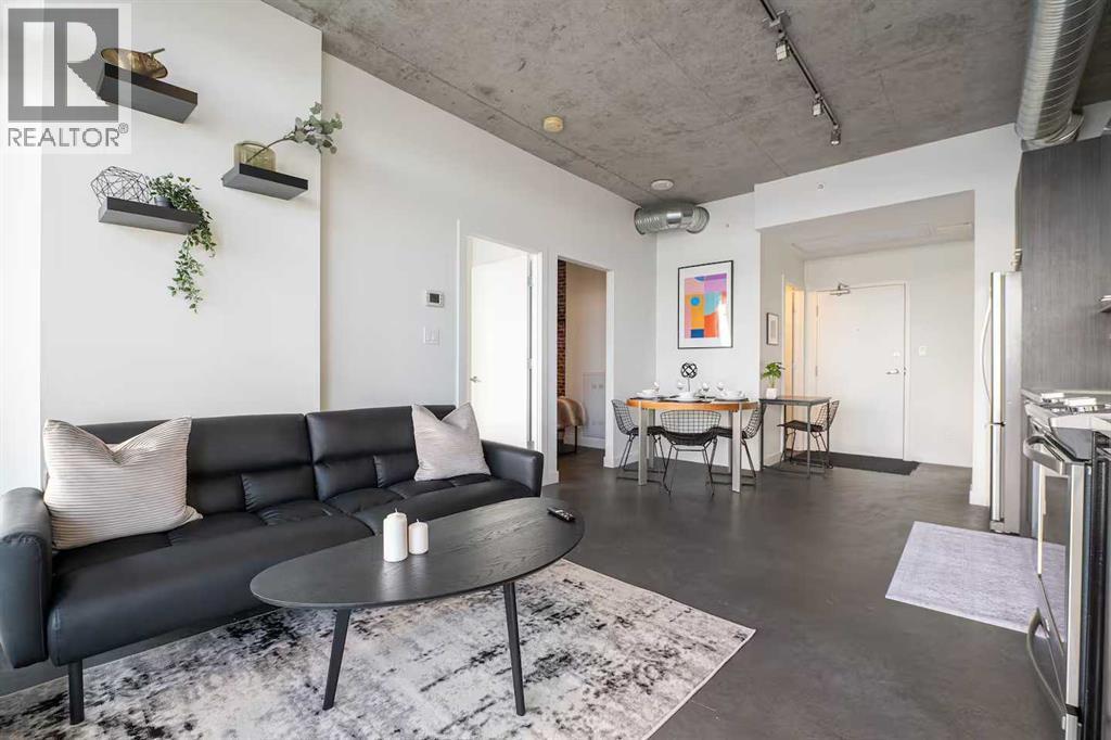 Welcome to INK by Battistella—where modern design meets vibrant downtown living. Perfectly situated in the heart of East Village, this striking condo is ideal for first home owners and professionals seeking a stylish urban retreat! Just steps from the City Hall LRT, Superstore, the award-winning Central Library, National Music Centre, Studio Bell, RiverWalk, and St. Patrick’s Island, this is truly the best of Calgary at your doorstep. Inside, this sun-drenched south-facing residence showcases uninterrupted views of the Saddledome and Stampede Grounds through expansive floor-to-ceiling windows. The industrial loft-inspired design exudes sophistication with 9’ exposed concrete ceilings, matte polished concrete floors, and central air conditioning for year-round comfort. The open-concept layout includes a versatile den/office (currently used as a bedroom), spacious primary bedroom, and a sleek 4-piece bathroom. The kitchen is a showpiece in itself, boasting quartz countertops, glossy metal upper cabinetry, premium hardware, and full-size stainless-steel appliances—seamlessly blending function and style. With in-suite laundry and a modern floorplan, this residence is perfectly tailored for the urban lifestyle. Whether you’re seeking your own inner-city sanctuary or a rental investment, INK offers a rare opportunity to own in one of Calgary’s most dynamic communities! (id:6769)