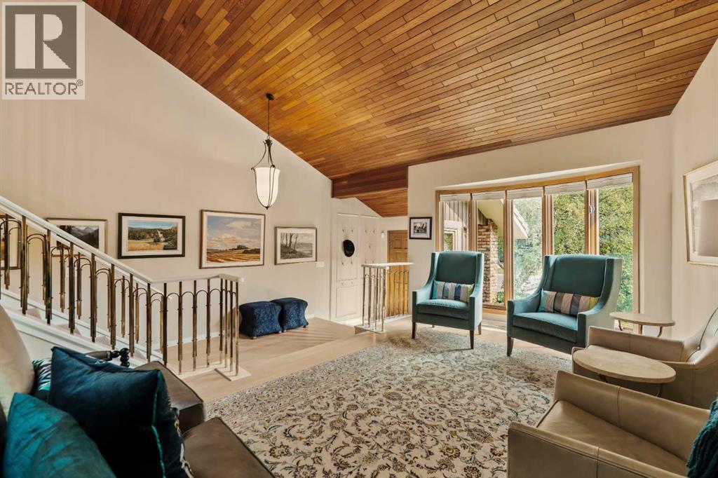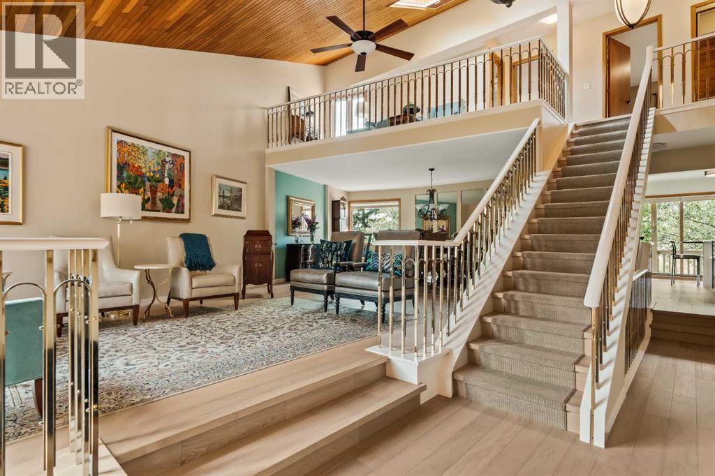 Tucked away on a quiet crescent, surrounded by mature trees and lush landscaping, this distinguished brick-facade residence offers a rare opportunity to own in one of Edgemont’s most desirable enclaves. Pride of ownership shines throughout this private property, set on a 0.20-acre lot with over 5,000 sq. ft. of total living space. Inside, hardwood floors carry through the main level, where a soaring lofted wood-plank ceiling and striking stone-surround fireplace create a warm and inviting focal point. Skylights and expansive windows flood the home with natural light, while the updated kitchen features custom cabinetry, premium finishes, and seamless flow to the dining and living areas. Upstairs, you’ll find three spacious bedrooms, including a serene primary suite with a spa-like ensuite and generous closet space. The fully finished lower level adds two more bedrooms, a full bath, and versatile living areas ideal for a recreation room, home office, or gym. An attached double garage, multiple gathering spaces, and an expansive landscaped yard complete the offering—perfect for quiet enjoyment or entertaining. Beyond the home, Edgemont offers unmatched convenience and lifestyle. Families will appreciate access to top-rated schools, numerous parks, and scenic walking and biking pathways. Daily errands are effortless with nearby shopping at Edgemont Village, Market Mall, and Crowfoot Centre. Quick access to major routes makes commuting downtown or escaping to the mountains a breeze, while the community’s reputation for safety, strong schools, and natural beauty makes it one of Calgary’s most sought-after neighbourhoods. Rarely do homes come to market in this pocket of Edgemont. This is your opportunity to enjoy timeless character, modern updates, and an unbeatable location. (id:6769)
