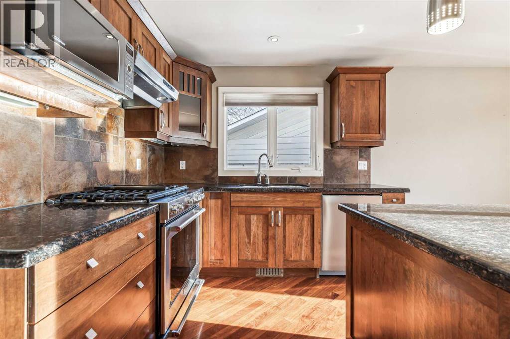 This stunning Lakeview bungalow sits on a spacious corner lot with 79 feet of frontage and 6265 total square feet. The main floor features a bright and airy living room flooded with light from the large bay window, and from the adjacent double glass patio doors leading from the kitchen and large dining room out to the wrap around deck and bbq area. This home with its gleaming hardwood floors has the perfect layout for entertaining, flowing effortlessly from the inviting living room with a large gas fireplace, into the spacious dining room. The kitchen boasts high end cabinetry, gorgeous granite counter tops, a large island, and plenty of storage. Down the hall you’ll find two of the home's three bedrooms. The primary is generously sized, featuring a 5 piece ensuite with a double vanity, jetted tub, and elegant finishes. The second bedroom also offers plenty of space, and a large closet. A second 4 piece bathroom completes the main level. The finished lower level has a separate entrance, allowing for a potential suite, (subject to approvals and permitting from the city of Calgary). There is an extremely large family room, ideal for movie nights, and with ample room for a pool table or home gym. This level features the home's third bedroom, as well as a den. The bedroom is bright and spacious with vinyl plank flooring, and plenty of natural light through a large window. The unfinished laundry room provides additional storage, and plenty of room for potential customization. The property has an expansive yard and a large wrap around deck. This beautiful home, located in a coveted neighbourhood on a generously sized corner lot, offers exceptional value. It has potential for development or for a suite conversion. It is also an amazing opportunity for a family to just move in and start making memories. Call to book your private viewing. (id:6769)