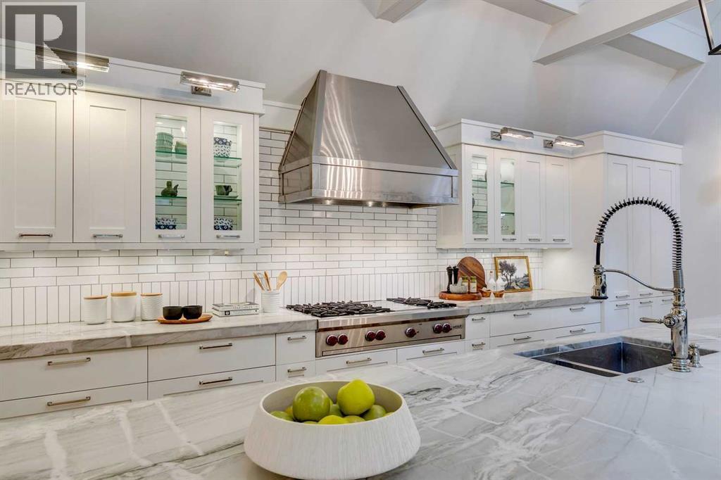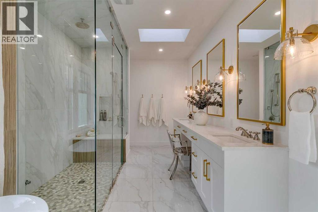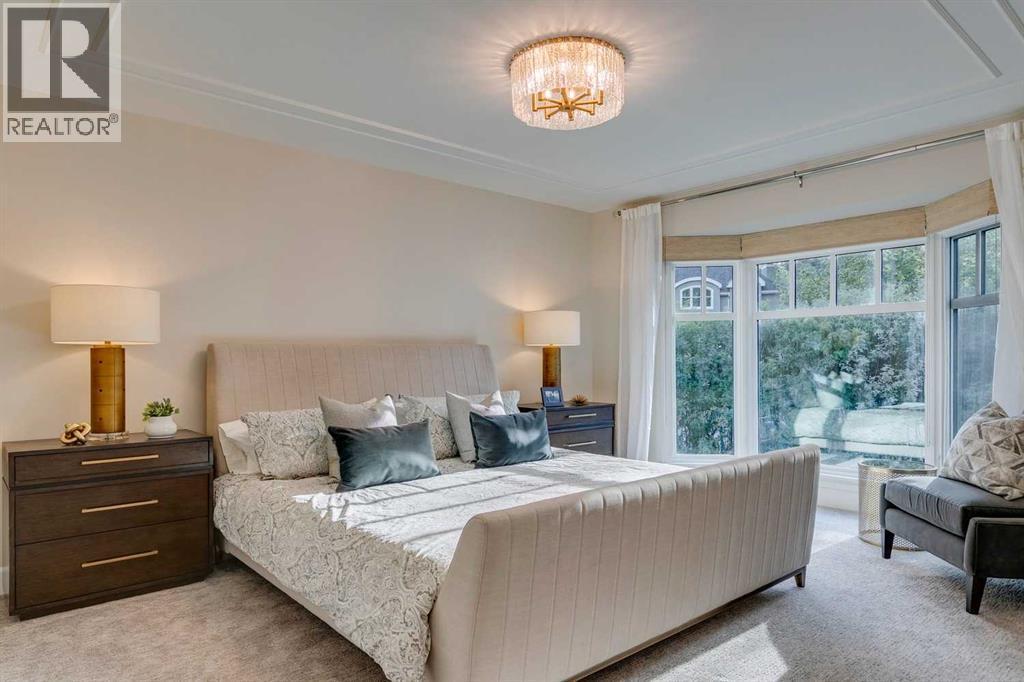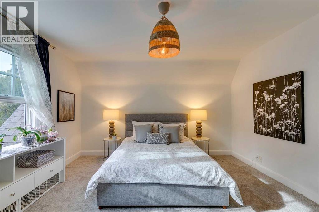 **Open house Sunday Sept 21 2:30-4 pm**. Beautiful luxury home with a total of 5671.48 square feet, situated on a private 1/3 of an acre corner prime lot in the heart of Mount Royal. Extensively renovated + elegantly appointed with a fabulous layout. The main floor offers a main floor primary suite with spacious walk in closet + spa ensuite bathroom. With 2676.54 square feet on this level, the other principal rooms are also all substantial in size. Lovely formal living room with wood burning fireplace, large dining room for intimate gatherings or family dinners. Stunning chefs kitchen with beamed ceilings, massive island, loads of cabinetry + open to comfy family room with wood burning fireplace. Laundry room + well thought out mud room complete the main level + lead to the attached triple tandem garage with high ceilings which could accommodate lifts + additional vehicles. The upper bedrooms are practical in design + share a renovated family bathroom. Easy downstairs living with a movie room with large projector screen. Bonus room to use as a wine cellar or for additional storage. Sizeable guest room + bathroom with full shower. Highly functional built out wet bar + additional living space for either your home gym or a games room for friends + family. Pie shaped lot with mature hedges creates a park feel + there is also a quiet secure backyard retreat with hot tub, pergola which is accessible through private entrance via the garage. Walk to excellent schools of all levels, parks, 17 avenue, Marda Loop shopping + more. (id:6769)