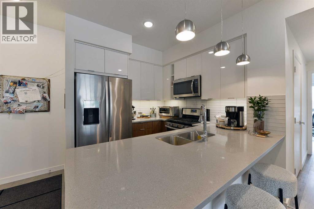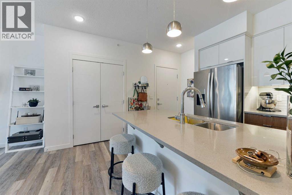 Top-floor corner unit in the highly desirable Duke building in Mission! This 2-bedroom, 2-bath condo offers over 1,000 sq. ft. of bright, open-concept living with large windows and luxury vinyl plank flooring throughout. The modern kitchen is equipped with quartz counters, a large island, and stainless steel appliances, flowing seamlessly into the spacious living and dining areas. The primary suite features north and west exposure, a walk-in closet, and a private ensuite, while the second bedroom—also with a walk-in closet—offers flexible space for guests or a home office. A full bathroom and laundry room with extra storage add convenience. Step outside to a private west-facing balcony with peaceful views of the park, cathedral, and Alberta Ballet—an inviting spot for your morning coffee or evening wind down. Set in the heart of Mission, you’re surrounded by Calgary’s best inner-city lifestyle. Just steps away are boutique coffee shops, acclaimed restaurants, vibrant pubs, fitness studios, and the Elbow River pathway. Stroll to Lindsay Park, enjoy festivals and markets, or take in the lively yet charming atmosphere that makes Mission one of Calgary’s most sought-after neighbourhoods. Additional features include A/C, custom Hunter Douglas blinds, and heated underground titled parking. (id:6769)