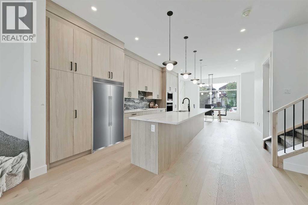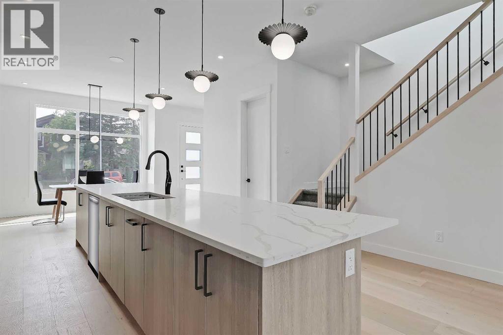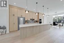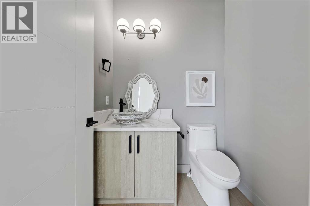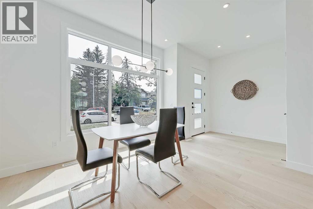 Sleek, Stylish, and Thoughtfully Designed – Welcome to 6416 34 Ave NW! From the moment you arrive, this home makes an impression. Modern curb appeal, a quiet tree-lined street, and a location that offers the perfect balance of city convenience and nature's tranquility. Step inside, and you'll instantly feel the elegance in every detail.The dining room sets the stage—an inviting space with designer lighting that creates the perfect ambiance, whether it's a casual brunch or a lively dinner party. The kitchen is an absolute showstopper, featuring ceiling-height custom cabinetry, gleaming quartz countertops, and a large island that serves as the heart of the home. Whether you're a gourmet chef or a takeout connoisseur, this space is as functional as it is beautiful. Flowing seamlessly from the kitchen, the living room is warm and welcoming, centred around a stunning full tile-surround fireplace with expansive windows on either side that bring in gorgeous natural light and a view of the backyard. A space like this just feels good—cozy yet sophisticated, perfect for quiet nights or entertaining guests. Tucked away at the back of the home, the mudroom is designed for real life, with custom storage, and a sleek tiled floor that stands up to Calgary’s seasons. Right next to it, the powder room feels upscale and refined—no detail overlooked.Head upstairs, and the luxury continues. The primary suite is a true retreat, with soaring ceilings, a large walk-in closet, and an ensuite that’s pure indulgence. A fully tiled shower with steam rough-in, heated floors, a soaker tub built for long, relaxing evenings, and dual vanities with quartz counters—this is the kind of space that makes every morning feel like a spa day. Two additional bedrooms, both bright and spacious, share a modern 4-piece bathroom with chic finishes. The laundry room is equally impressive, complete with a quartz folding counter, built-in cabinetry, and a deep sink—because practical should still be beautiful. And let’s not forget the fully self-contained 2-BEDROOM LEGAL BASEMENT SUITE (subject to permits and approvals by the city). With its own private entrance, it offers a full kitchen with quartz counters and ceiling-height cabinets, a spacious living area, two generous bedrooms, and a sleek 4-piece bath with a full tile surround. Whether it’s for extended family, guests, or rental income, this space adds incredible value.To top it all off, this home sits in a prime location—steps from the Bow River pathways, minutes to Winsport, U of C, and downtown. You’re surrounded by parks, shops, and some of the best local cafés in the city. Disclaimer: The photos are from the show suite. (id:6769)