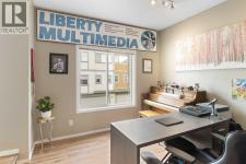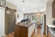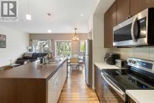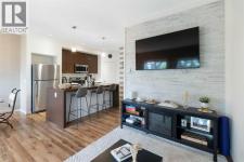 Beautifully styled with modern finishes, this 3 storey townhome offers a bright and functional layout designed for comfort and connection. An insulated and drywalled single attached garage with storage connects to the entry level for everyday convenience. On the main floor, 9’ ceilings set the stage for a bright and open layout. A welcoming living room is styled with a feature wall that adds warmth and character. Patio sliders bring in natural light and open to a south facing balcony with green space views, an ideal backdrop for barbeques or quiet evenings outdoors. The adjacent dining room is anchored by designer lighting and flows easily into the stunning kitchen where 2 toned cabinetry, stainless steel appliances, a pantry and a large island provide both style and utility for casual gatherings or daily routines. A versatile flex space offers endless options for a home office, hobby room, media lounge or gym. Handily a stylish powder room completes this level. Upstairs, a spacious primary retreat includes a walk in closet and a private 4 pc ensuite, while a second large bedroom also enjoys a walk in closet and nearby access to another 4 pc bathroom. Convenient upper level laundry enhances everyday function. Comfort is assured with tankless hot water, in-floor heating and a water softener for efficiency and ease. This quiet complex is surrounded by pathways, parks and green space, with Kenneth D. Taylor School just a short walk away. Nearby Evanston Towne Centre offers shops and restaurants within minutes, while the environmental reserve and winding community pathways encourage a walkable lifestyle in this extremely connected neighbourhood. Offering style, comfort and convenience in equal measure, this home is a perfect fit for today’s modern lifestyle! (id:6769)