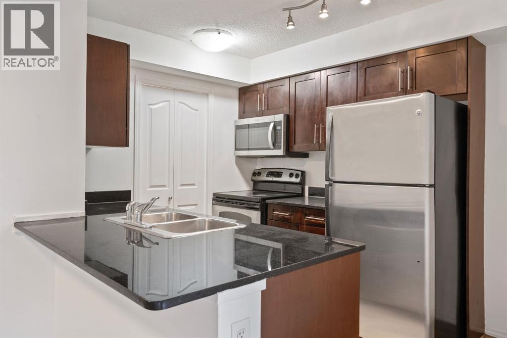 Don’t miss out on this beautifully kept 2-bedroom, 1-bath condo with an open-concept layout in a prime, amenity-rich location with low condo fees. Inside, the home feels bright and welcoming from the moment you enter, with an open dining and kitchen area that flows into a spacious living room and out to a covered balcony perfect for morning coffee or relaxing in the evening. The kitchen offers stainless steel appliances, granite counters, ample cabinetry, and plenty of workspace for everyday meals or hosting friends and family. Thoughtfully designed, the bedrooms are positioned on opposite sides of the suite for maximum privacy. The generous primary bedroom features a walk-in closet and a door to the full bathroom. An in-suite laundry room with extra storage keeps daily life simple and organized. Parking is a breeze with your heated, titled underground stall and easy elevator access. Condo fees include heat and water for added value and peace of mind. The location is unbeatable: you’re across the street from everyday amenities (Tim Hortons, Esso/Macs, liquor stores, restaurants, and a doctor’s office), with a bus stop right in front of the complex. The LRT and Genesis Centre are within walking distance, and you’ll enjoy quick connections to Stoney & Métis Trail. Schools and playgrounds are nearby, making this a fantastic choice for comfort and convenience. With its blend of space, privacy, and lifestyle, this move-in-ready condo is ready to welcome its next owners. Book your showing today! (id:6769)