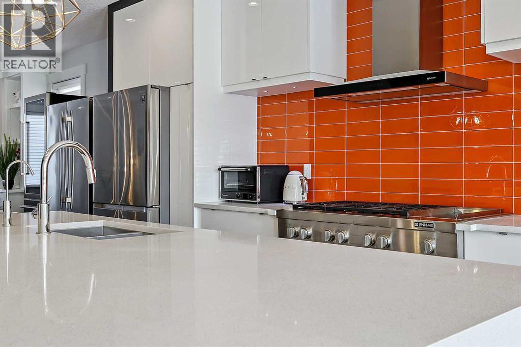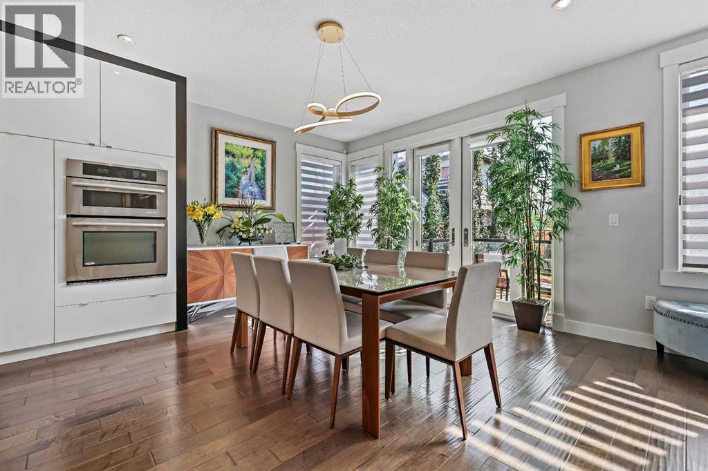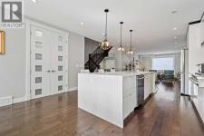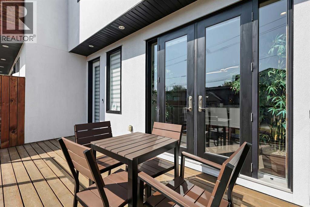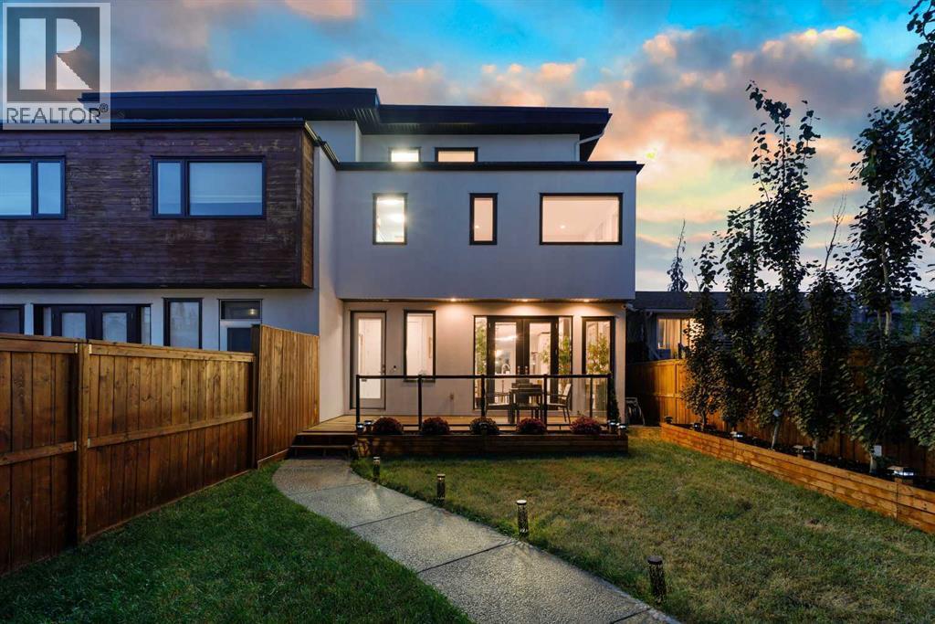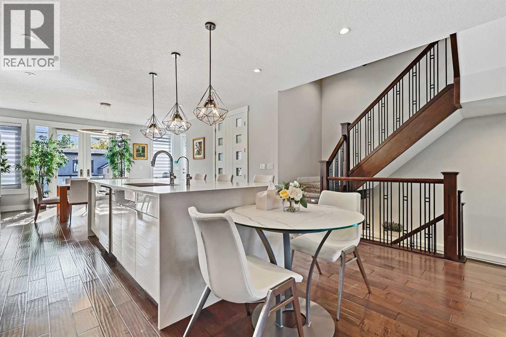 A rare opportunity in Montgomery — semi-detached home stands out with four fully finished levels, nearly 4000 sqft of developed living space, a private balcony, and a long list of premium upgrades. Steps from the Bow River pathway, Shouldice Park, Market Mall, and minutes to both Foothills and Children's Hospital, this location is as connected as it is private. Inside, the home is finished with luxury Canadian maple hardwood on all upper levels, layered lighting (including updated LED fixtures), and fresh paint throughout. The main floor showcases a sleek chef's kitchen with JennAir stainless steel appliances, including a gas cooktop, built-in oven, chimney hood fan, and integrated microwave. A full walk-in pantry, with double doors, and extended island with waterfall quartz complete the space. The spacious living area offers floor-to-ceiling windows and a gas fireplace framed by custom tile. The second level hosts dual primary suites, each with walk-in closets and five-piece ensuites featuring full tile, deep tubs, and separate glass showers. A bonus room with custom built-in shelving and a full laundry room with storage complete this level. On the top floor, a third bedroom, with its own 5 pc ensuite, walk in closet, and dedicated office that's open to a private rooftop balcony with unobstructed views. The fully developed basement includes a fourth bedroom, full bath, in-floor heating, large rec room with wet bar and beverage fridge, and extra storage. Additional upgrades include: newer high-capacity heat pump system, Kinetico water softener, dechlorinator, purified drinking tap, security cameras (x4), dual doorbell cams, Hunter Douglas window coverings and a freshly painted interior. Detached garage and landscaped yard, with a large deck and beautifully tended garden complete the package. (id:6769)