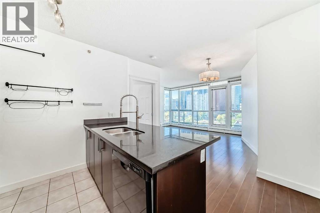 Welcome to Riverfront Pointe! This bright 7th floor west corner suite offers 2 bedrooms, 2 bathrooms + a flex/office area with unobstructed views of the Bow River and Downtown skyline. The open-concept layout features granite counters, designer tile backsplash, black appliances, eating bar, laminate flooring, and floor-to-ceiling windows that flood the home with natural light. The primary bedroom includes a 4-piece ensuite, while the second bedroom and full bath add flexibility for guests or a home office. In-suite laundry adds everyday conveniencBuilding amenities include a fitness centre, landscaped courtyard, concierge service, keyless entry, bike storage, and a titled underground parking stall located just steps from the elevator. Enjoy the ultimate urban lifestyle—walk to the Calgary Zoo in 10 minutes, City Hall LRT in 2 blocks. Enjoy being steps away from river pathways, parks, Chinatown, Eau Claire, and the best of downtown dining and entertainment.An excellent investment opportunity—previous tenant paid $2,500/month. Pet-friendly (with board approval). (id:6769)