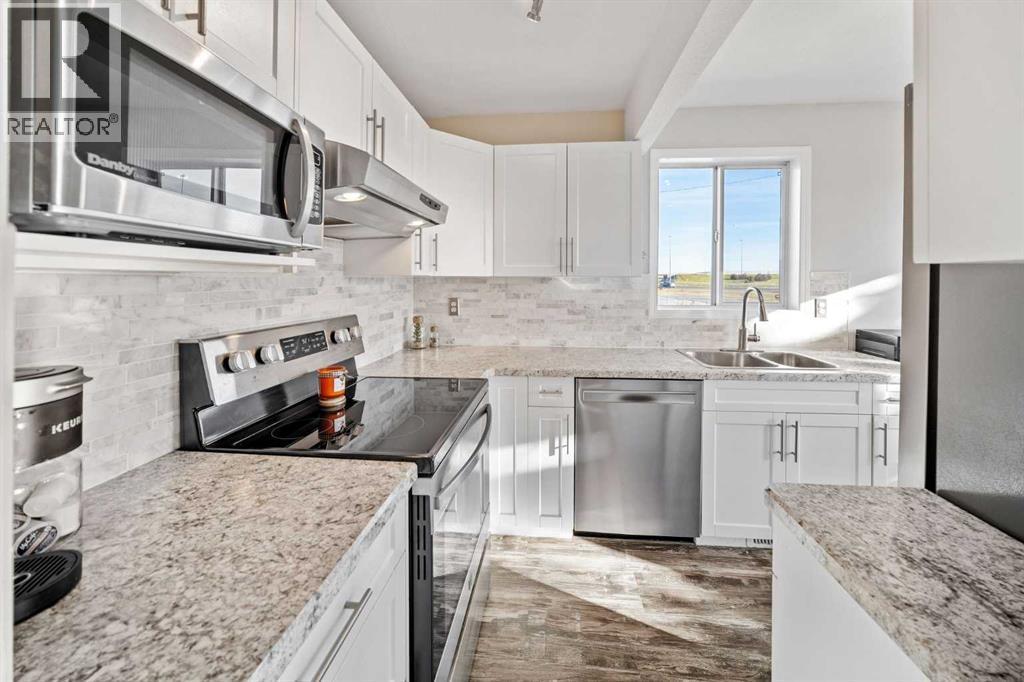 *Open House Saturday October 4 12-3 pm* It’s rare to find a home this spectacular in today’s market. Lovingly upgraded and meticulously maintained, this 3-bedroom end-unit townhome sits on a private corner lot in a quiet, well-managed condominium community. You’ll enjoy peace and privacy, with schools, major amenities, and quick access to the QE2 just minutes away. The main floor is smartly designed for functionality and flow, keeping the living room separate from the kitchen, perfect for entertaining guests or enjoying quiet evenings. Large corner windows allow natural light to pour in throughout the day. The kitchen has been updated with modern finishes and appliances. Upstairs, you’ll find two spacious bedrooms, a full 4-piece bathroom, and a quiet reading nook. The standout feature is the primary bedroom, offering 13-foot ceilings and a true sense of retreat. An unfinished basement includes a rough-in for a bathroom and offers endless potential for additional living space. A large single attached garage provides plenty of room for parking and storage. Updates include NEW hot water tank (2025) NEW stove (2025) Dishwasher (2024) NEW garage door spring and seals (2025) NEW Low-E Windows upstairs. This home combines comfort, convenience, and value in one of Airdrie’s most accessible locations. (id:6769)