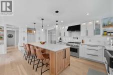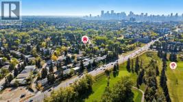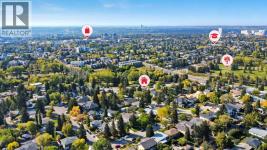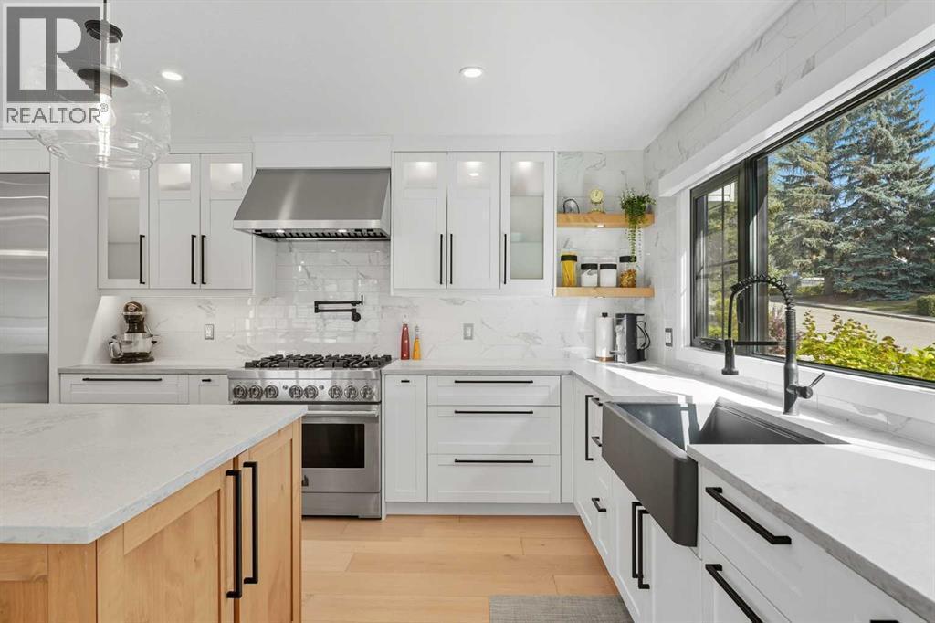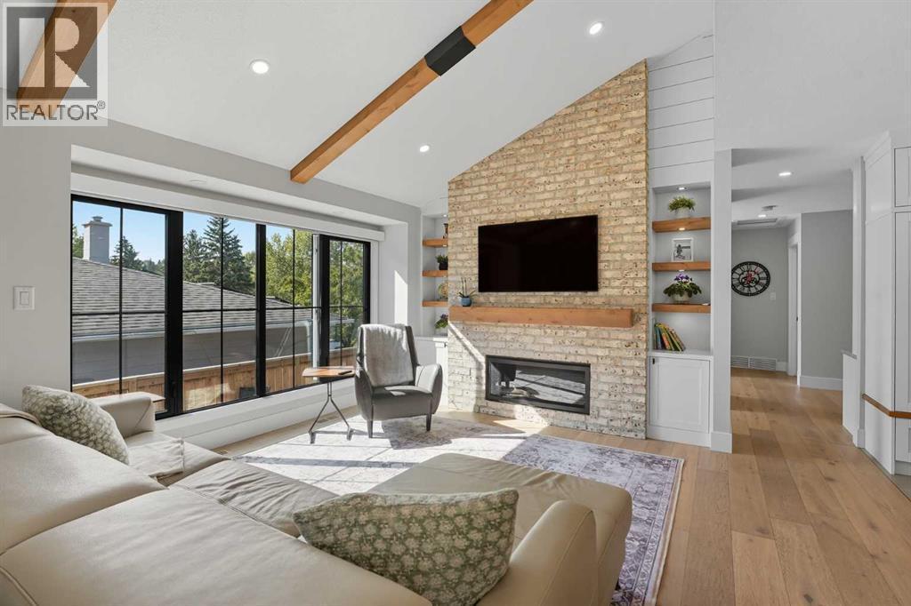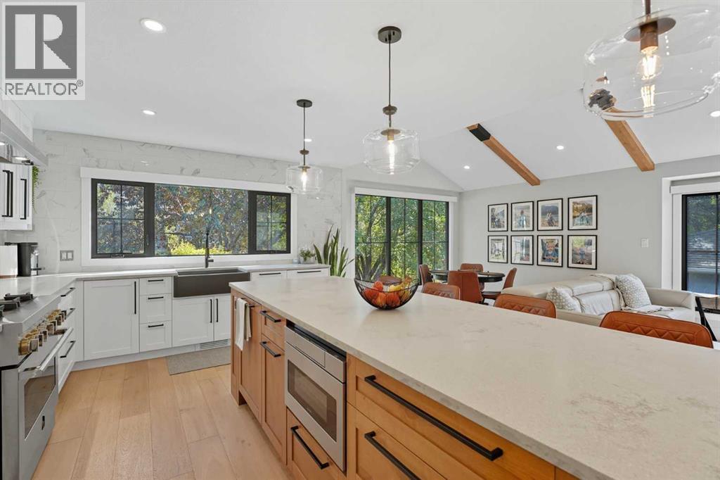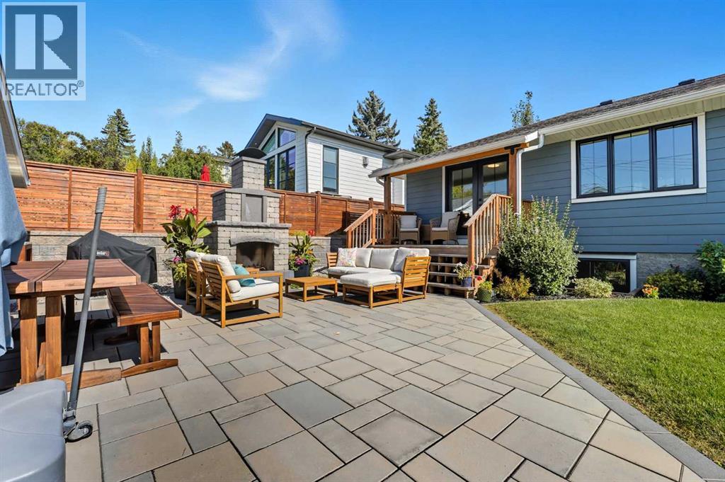 One of the best opportunities to own in Rosemont, this stunningly renovated bungalow combines designer style with functional family living on a massive 56’ x 130’ lot mere moments from Confederation Park. Vaulted ceilings with exposed beams crown the open main floor where oversized black-clad windows frame treed views and wide plank flooring flows seamlessly throughout. A living room anchored by a brick-accented gas fireplace with custom built-ins creates an inviting retreat while the adjacent dining area overlooks the leafy streetscape, perfect for family gatherings or entertaining friends. Culinary creativity comes alive in the custom kitchen featuring full-height cabinets, stone counters, a massive island, high-end stainless steel appliances including a gas range, a pot filler and statement lighting. A side entry with custom mudroom built-ins adds everyday practicality and extends to a side patio for convenient barbequing. A built-in office area provides a defined space for homework, art projects or remote work. The primary suite delivers a true sanctuary with French doors to the backyard, a custom walk-in closet and a luxurious ensuite boasting dual sinks and an oversized rain shower. Completing this level are a second bedroom and a stylish 4-piece bath. The fully finished lower level is equally impressive with a large rec room easily divided into separate play, games or media zones. A handy built-in wet bar makes entertaining and snack and drink refills effortless. 2 additional bedrooms, a 4-piece bath and a huge laundry room with sink and abundant storage complete this level. Outside, meticulous landscaping enhances multiple outdoor living areas designed for both connection and retreat. A quaint front porch welcomes morning coffees in the sunshine while a side patio just off the kitchen simplifies year-round barbequing. In the west-facing backyard, a tiered design creates distinct spaces for every occasion. A raised deck offers a quiet spot to unwind, while t he expansive paver stone patio with a wood-burning outdoor fireplace sets the stage for long summer evenings with family and friends. Surrounding these gathering spaces, lush greenery and thoughtfully placed perennials add colour and privacy. Ample lawn stretches across the yard, giving children and pets room to play, while mature trees lend shade and a sense of established charm. A paver pathway leads to the oversized double detached garage while a front driveway adds extra parking. Comfort is elevated by central air conditioning, a water softener, remote-controlled window coverings and high-end finishes throughout. This sought-after location offers easy access to downtown, top-rated schools including Rosemont School and Saint Joseph Junior High, SAIT, Riley Park, the Jubilee, North Hill Mall, Rosemont Tennis Club and Confederation Golf Course, making this home a complete lifestyle package in one of Calgary’s most desirable communities. (id:6769)
