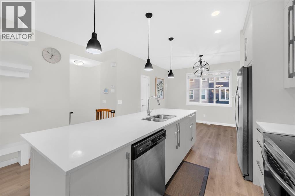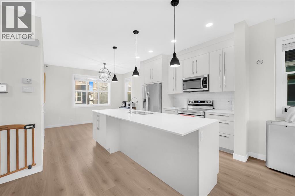 OPEN HOUSE SUNDAY SEP 28, 12pm - 3pm | Welcome to this beautiful CORNER END-UNIT townhome in the vibrant and fast-growing community of Cornerstone, perfectly positioned to enjoy full-day sunshine and directly facing a large park and green space. This spacious 3-level home offers a thoughtful layout with 4 bedrooms, 2.5 bathrooms, and a heated double attached garage. The entry level features a versatile bedroom that can serve as a guest room, office, or flex space, with direct access to the heated garage to keep your vehicles warm during winter. The open-concept second level is designed for both everyday living and entertaining, showcasing a bright and modern kitchen with full-height white cabinetry, quartz countertops, stainless steel appliances, a pantry for extra storage, a dining area, a cozy reading nook, and a large living room that flows seamlessly onto a private balcony overlooking the courtyard—perfect for summer BBQs and relaxing evenings. A convenient 2-piece bathroom completes this level. Upstairs, the spacious primary suite features a walk-in closet and ensuite with floor-to-ceiling tiled shower for a sleek, low-maintenance finish, while two additional bedrooms share a 4-piece bathroom. Laundry is thoughtfully located on the upper floor for added convenience. Large windows throughout the home create a bright and inviting atmosphere, while the location offers easy access to parks, walking paths, and family-friendly green spaces just steps from your front door. Cornerstone is one of Calgary’s fastest-growing communities, with new schools opening in the next two years and potentially a Gurdwara just 3 minutes away, along with convenient access to Stoney Trail, Deerfoot Trail, Calgary International Airport, and CrossIron Mills Mall. Combining comfort, style, and location, this home is the perfect choice for families or anyone seeking a spacious property in a thriving community—schedule your private showing today before it’s gone! (id:6769)