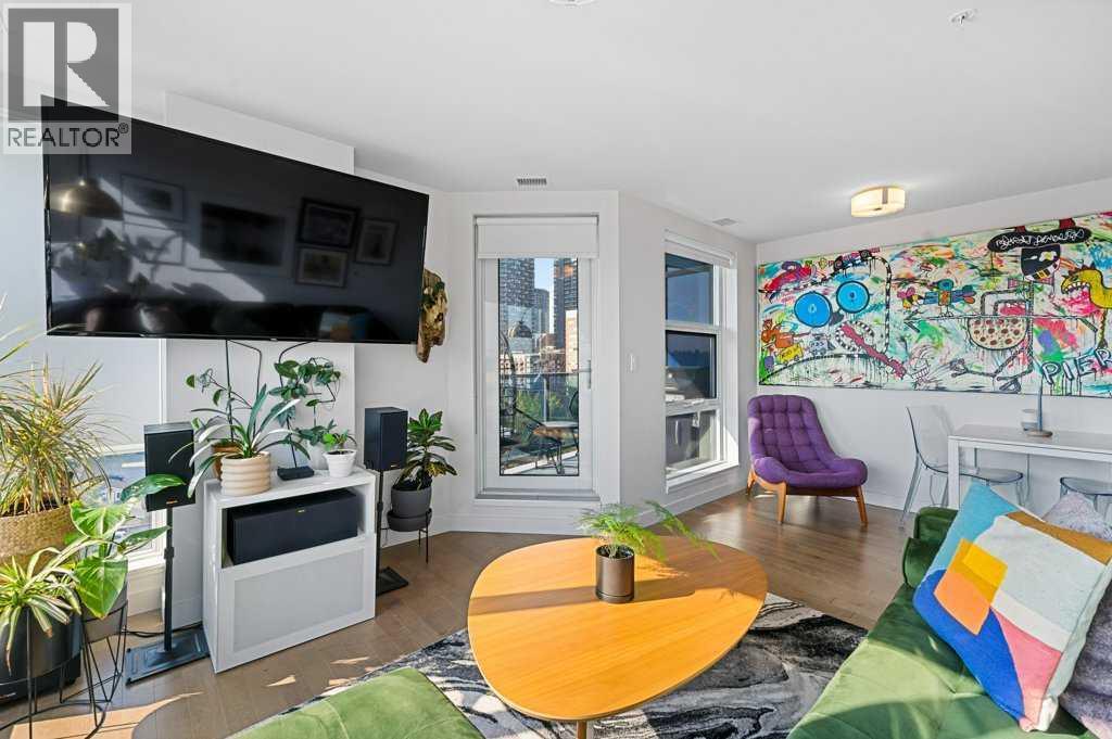 Welcome to a home where downtown living is redefined. Perfectly positioned in one of the Beltline's most coveted locations, this sophisticated corner unit offers a rare blend of city vibrancy and park-side tranquility. Built in 2015, this two-bedroom, two-bathroom residence showcases unobstructed city and stunning mountain views with a sun-drenched, southwest exposure that fills every room with natural light.Upon entry, you’re greeted by a sense of thoughtful design, from the generous storage to the secondary bath with its elegant, tiled shower and heated floors. The heart of this home is a beautifully appointed U-shaped kitchen, featuring full-sized GE stainless steel appliances, a sleek glass subway tile backsplash, and granite countertops. The oversized island offers ample seating, making it an ideal space for entertaining.The open living and dining areas are anchored by floor-to-ceiling windows and hardwood floors, creating a bright and expansive feel. A spacious primary bedroom is a true downtown rarity—easily accommodating a king-sized bed—and includes a custom-designed walk-in closet from California Closets to maximize storage. The primary ensuite is a private retreat, complete with a large soaker tub and heated floors.Enjoy warm summer days and breathtaking sunsets from your private west-facing patio, which overlooks Central Memorial Park and includes a gas line for your barbecue. The home is complete with in-suite laundry, A/C, titled parking, and two additional storage lockers.The Park elevates living with its exceptional amenities, including a massive common patio with a community garden, a guest suite, a well-equipped gym, and visitor parking with EV charging. This prime address puts you moments from both the tourism-worthy restaurants of 1 St SW and the vibrant culture of the Beltline and 4 St SW, offering a truly walkable lifestyle. (id:6769)