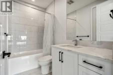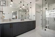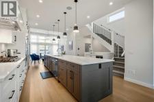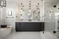 Situated on a quiet street in the highly sought-after community of Montgomery. As you enter this stunning home you will notice the abundance of natural light and that no detail was overlooked from the luxurious wide plank hardwood floors, high paint finish ceilings, 8’ solid core doors, elegant railing, in ceiling speakers and designer lights. The spacious front dining room opens to the central gourmet kitchen. This is a focal point with an expansive 16’ kitchen island, gorgeous quartz counters, a timeless herringbone tile backsplash, SS built in appliances including a gas cook top and wine fridge. All highlighted by a custom wood hood, two-tone cabinets that reach to the ceiling with glass inserts, under-cabinet lights, slow-close cabinet doors, as well as plenty of storage with additional built-in features such as spice racks and pull out details. The kitchen opens to the inviting living room with soaring 12’ ceilings, a distinctive gas fireplace with brick surrounds and built ins, plus floor to ceiling patio sliders creating a great indoor outdoor space, making this home ideal for entertaining. The sunny SOUTH backyard has a low maintenance vinyl deck and a BBQ gas line ideal for gatherings. Completing the main living area is a large mudroom with bench detail and private powder room with a full vanity. Upstairs you will find two bright well sized bedrooms, a large 4 pc bath and a convenient laundry room with plenty of storage and a sink. The primary retreat is on its own separate level creating a true oasis with a tray ceiling detail, large windows and a spacious walk in closets with built ins. The spa inspired ensuite includes heated floors, a stunning free standing tub, a massive tile shower, dual sinks with stone counters, and a private water closet. The lower level has a great rec room with a built in media center, a full wet bar including beverage fridge, floating shelves and wine racks. A 4 pc bath and fourth bedroom with a walk in closet perfect for gue sts or hosting gatherings. This home also offers the comforts of air conditioning, a vacu-flow rough in, plus a fully insulated and drywalled double detached garage with gas line rough in for a heater. Steps away from scenic parks, walking trails, cafes, restaurants and shopping. Schedule your private showing or view the virtual tour today. (id:6769)