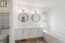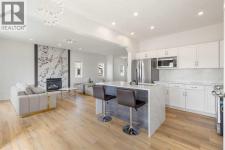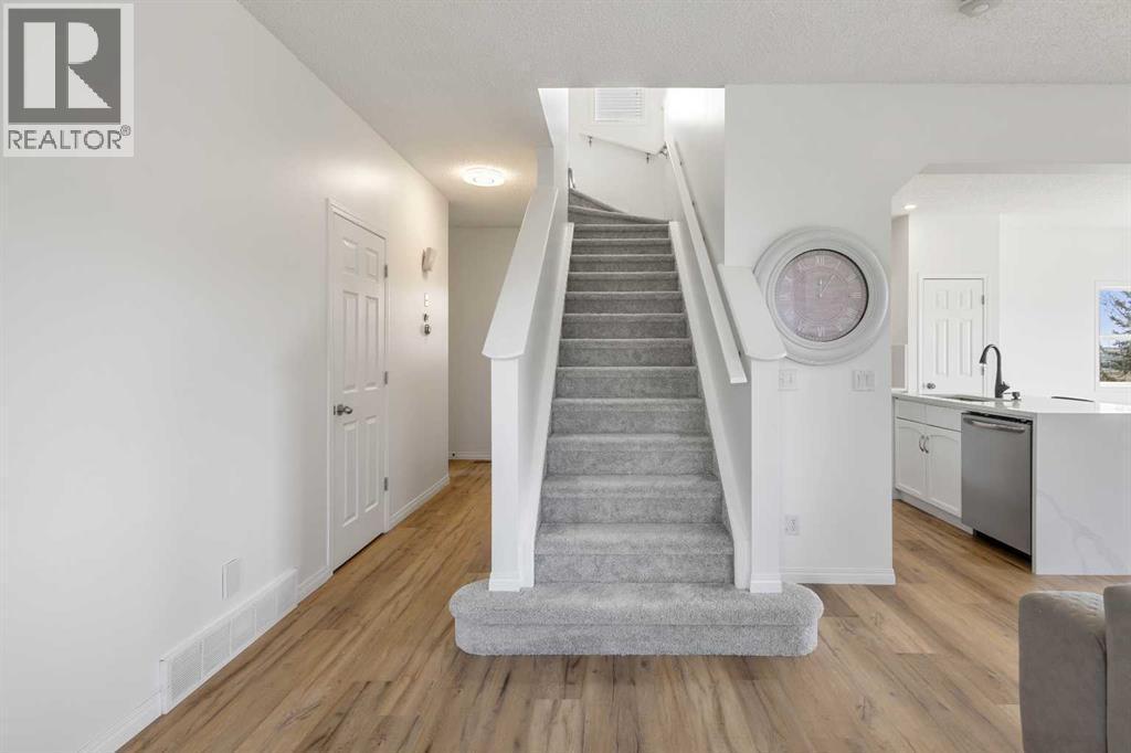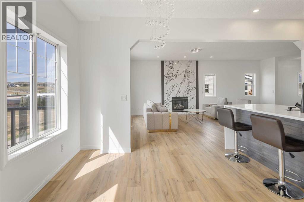 Prepare to be impressed by this beautifully upgraded two-story walkout home, perfectly situated on a quiet street in the heart of Evanston (over $90,000 spent on upgrades). With exceptional curb appeal and backing onto a the ridge and green space with walking paths and a creek, this home offers the perfect blend of elegance, functionality, and location.Step inside to discover a bright, open-concept main floor with 9’ ceilings, large windows that flood the space with natural light, and breathtaking ridge views from the living and dining areas. The spacious living room showcases a sleek one-piece Calacatta quartz fireplace surround, while the adjacent dining area is ideal for family meals or entertaining.The contemporary kitchen is a chef’s dream, featuring a show-stopping Calacatta quartz waterfall island, matching quartz backsplash, and a full suite of new stainless steel appliances including an electric range, range hood, dishwasher, and a recently purchased refrigerator.Upstairs, the bonus room is thoughtfully placed at the rear of the home to fully capture the views, along with two additional bedrooms that also overlook the ridge. The front-facing primary suite includes a relaxing ensuite with dual sinks, a soaker tub, and separate shower. A convenient laundry room is also located on the second floor.The home features brand new luxury vinyl plank flooring and subfloor on the main level and in all bathrooms, upgraded 55 oz premium carpet upstairs (installed April 2025), fresh paint throughout, and all new lighting fixtures, mirrors, sinks, and faucets, giving the home a fresh, modern feel from top to bottom.The walkout basement is undeveloped and includes rough-in plumbing, offering endless potential for future expansion.Outside, enjoy the peace and privacy of a huge pie-shaped lot with mature landscaping, a shed, and a pad with electrical already in place for a future hot tub. Major exterior upgrades include a brand new roof (April 2025), composite de ck with sleek railings, 200+ sq. ft. of poured concrete patio, natural stone accents on the front façade, and durable white vinyl siding replacing the original cedar shakes.This incredible home is walking distance to schools, parks, shopping, and amenities, making it the perfect opportunity for families looking for a move-in ready home in an unbeatable location. (id:6769)