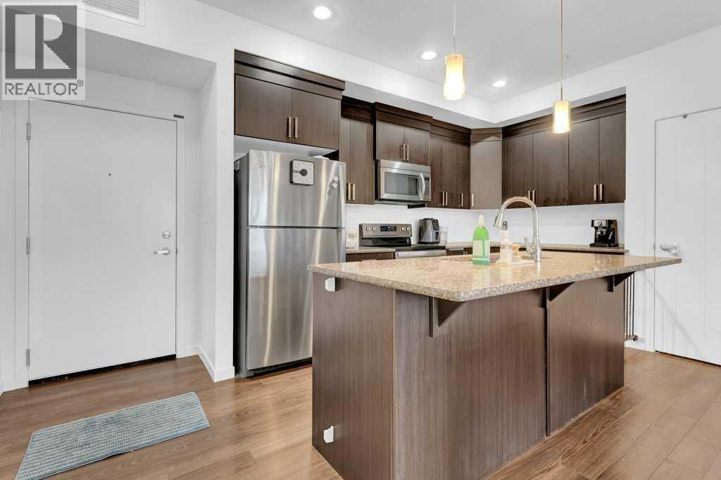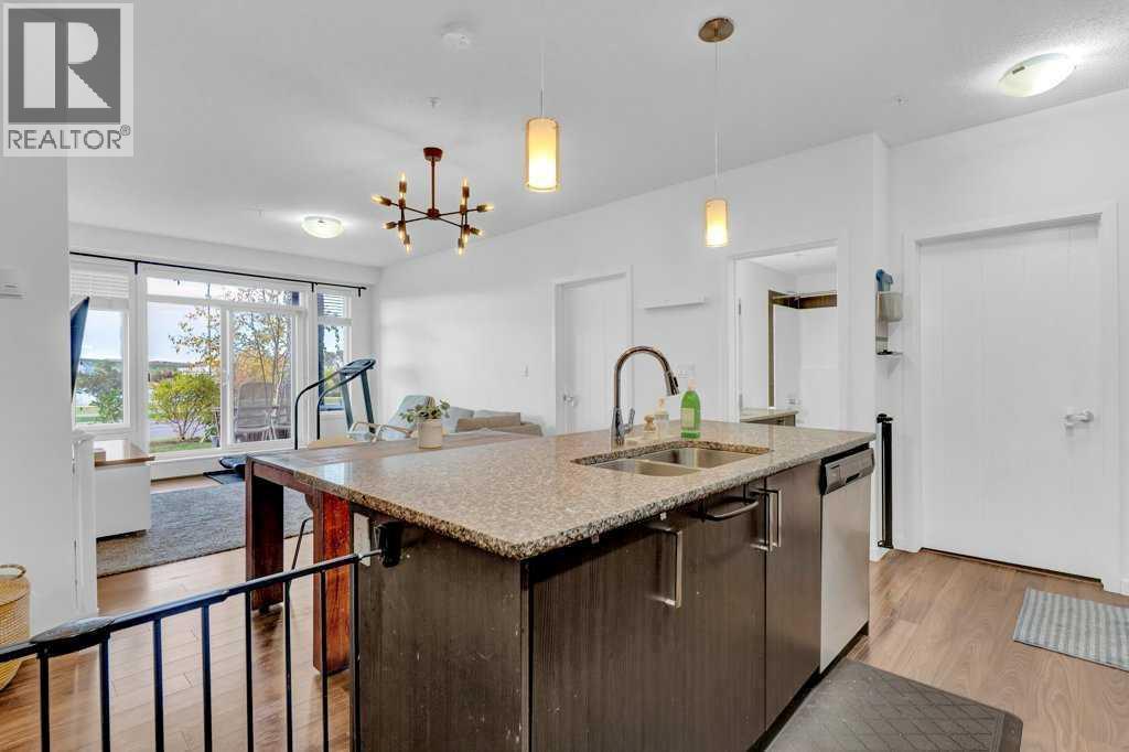 Stunning and immaculate condo in a highly sought-after neighborhood! Located in the vibrant New Brighton community, this gorgeous ground-floor unit offers a bright, open-concept layout. The spacious kitchen features granite countertops, stainless steel appliances, ample cabinetry, and a generously sized pantry. With 2 bedrooms, 2 full bathrooms, and a laundry room, this home has it all. Enjoy breathtaking views of the West Pond and pathways from the living room and both bedrooms. The master suite boasts a luxurious ensuite and a walk-through closet. All bathrooms are equipped with granite countertops and undermount sinks for an elegant touch. The covered patio is ideal for BBQs and entertaining, while the secured underground heated parking provides convenience year-round. This condo is close to schools, parks, restaurants, and numerous other amenities. Don’t miss out—schedule your viewing today (id:6769)