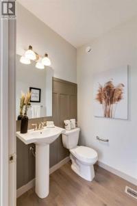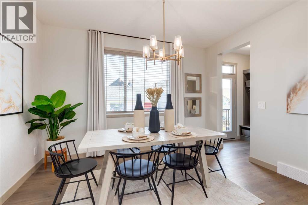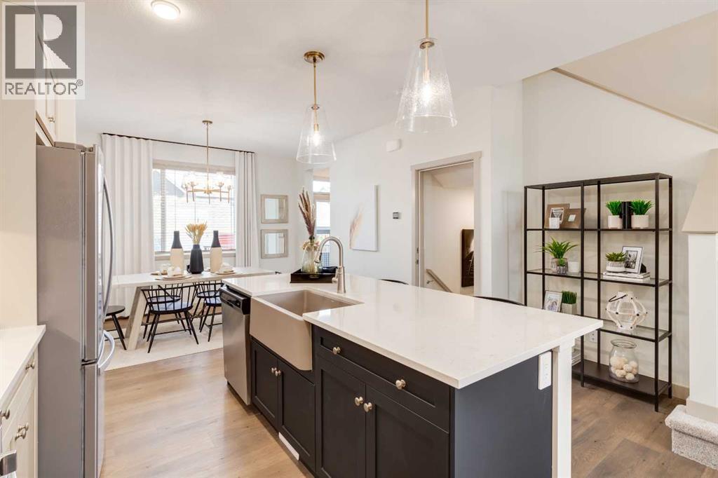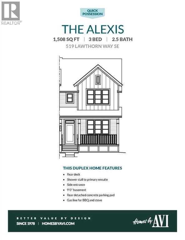 SOME HOMES ASK YOU TO COMPROMISE; THIS ONE JUST STACKS UP THE ADVANTAGES. Set on a SOUTH-FACING LOT in Lanark Landing, this brand-new Alexis model from Homes by Avi makes the most of every inch of its 1,508 sq ft. The curb appeal begins with a covered front porch, but it’s what happens once you step inside that really seals the deal.Nine-foot ceilings on the main floor set the tone for an open, airy flow, grounded by luxury vinyl plank flooring that’s built to handle daily life. The kitchen pulls its weight with 42" UPPER CABINETRY, QUARTZ COUNTERS, a Silgranit undermount sink, and a full stainless-steel appliance package. The electric range is ready to cook from day one, with a gas rough-in in place if you prefer the flame. A pantry tucks neatly out of sight, recessed lighting keeps the mood bright, and the dining area at the back leads to a mudroom and rear deck for easy indoor-outdoor meals.Upstairs, the primary bedroom proves it’s more than just a place to sleep: a generous walk-in closet, a quartz-topped vanity, and a glass-doored shower turn routines into rituals. Two additional bedrooms share a full bath, while the laundry room is exactly where it should be—upstairs, with the bedrooms, so baskets don’t migrate up and down the stairs.The details here are future-focused. A SIDE ENTRY DOOR gives you flexibility for what the unfinished basement can become, with TWO LARGE WINDOWS and a PLUMBING ROUGH-IN for a bar or sink already in place. Nine-foot foundation walls mean even the lower level feels expansive, while a 200-AMP ELECTRICAL PANEL leaves room for tomorrow’s tech. Outside, a 20’X20’ CONCRETE PAD with lane access is ready for your garage vision—or just park with ease from day one.Lanark Landing itself ties the package together. Pathways loop past parks, playgrounds, and a BRAND-NEW ELEMENTARY SCHOOL, while shopping and commuter routes stay close without crowding your day-to-day life. And with the HOA handling common-area upkeep, the neighbourhood wi ll stay as polished as the day you move in.This is a home that blends thoughtful upgrades with everyday practicality, set in a community built for connection. Possession is estimated for the end of November—just in time to celebrate the holidays in a brand-new space. Book a showing and see for yourself how it all comes together at 519 Lawthorn Way SE. • PLEASE NOTE: Photos are of a Showhome of the same model – fit and finish may differ. Interior selections and floorplans shown in photos. (id:6769)