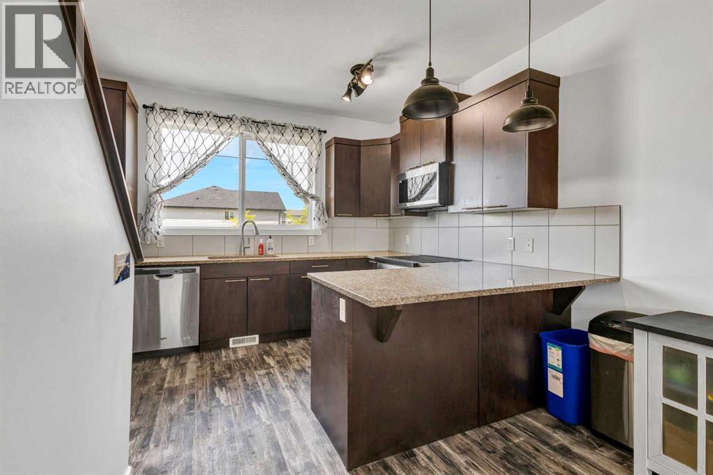 Welcome to Skyview Ranch- Best Price In The Complex!!—where modern updates meet everyday comfort in this beautifully maintained 3-storey townhouse. Offering over 1,200 sq. ft. of thoughtfully designed living space, this home features 2 spacious bedrooms, 2.5 bathrooms, and a single attached garage with an extended driveway for extra parking, conveniently located to access additional street parking. Step into a bright, freshly repainted interior with new flooring and trim, creating a crisp and contemporary feel from the moment you arrive. The open-concept layout seamlessly connects the living room, dining area, and stylish kitchen—perfect for relaxing evenings or entertaining guests. The kitchen stands out with new stainless steel appliances, quartz countertops, a large breakfast bar seating, sleek cabinetry, and updated faucets for a polished finish. Upstairs, you'll find two generous bedrooms, including a stunning primary suite featuring vaulted ceilings, double closets, and a private 3-piece ensuite. A second full bathroom and convenient upper-floor laundry complete the space. Enjoy summer evenings on your private balcony, or take advantage of this home’s fantastic location—tucked away on a quiet street, close to playgrounds, daycares, shopping, and more. With quick access to Stoney Trail, commuting and city access are effortless. With tasteful updates and turn-key appeal, this home is ready for you to move in and enjoy. Book your private showing today! (id:6769)