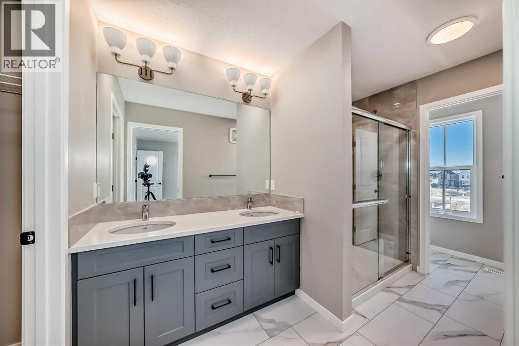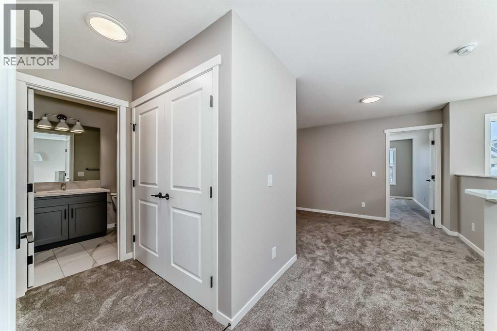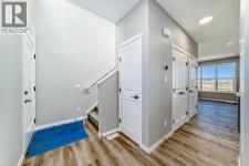 Introducing the “Carisa” by Hopewell Residential—an exceptionally designed home where smart upgrades, modern finishes, and functional living spaces come together beautifully. Located on a quiet street in the growing southeast community of Rangeview, this home sits on an oversized lot with a west-facing backyard that’s perfect for soaking in afternoon sun, relaxing evenings, or entertaining outdoors. An exterior gas line makes it ready for your future BBQ setup. Inside, the main floor greets you with a spacious and light-filled layout, featuring luxury vinyl plank flooring and knockdown ceilings that carry a clean, stylish look throughout. The open-concept design connects the upgraded kitchen, large Lifestyle/Dining Room, and cozy living area seamlessly—ideal for everyday life and hosting. The kitchen is a showstopper with quartz countertops, upgraded cabinetry including an added bank of drawers, a chimney hood fan, built-in microwave, pot lighting, and stainless steel appliances. A smartly positioned pocket office near the front entrance offers a quiet, tucked-away space perfect for remote work or homework. Upstairs, a versatile entertainment room is enhanced by an added stairwell window, bringing in even more natural light. The centrally located laundry room adds everyday convenience. The spacious primary suite features a large walk-in closet and a 4-piece ensuite with fully tiled shower walls. Two additional bedrooms round out the upper level, offering great flexibility for families or guests. This home also includes a 9-foot foundation and a separate side entrance—opening the door to future development or potential suite possibilities (A secondary suite would be subject to approval and permitting by the city/municipality). EV charger and solar panel rough-ins are also included, adding future-ready value. **This home also comes complete with full front and backyard landscaping, including sod and mulch on the side yards. If you're looking for a home that balances t houghtful design, upgraded features, and long-term versatility—this one checks every box. Located in Calgary’s desirable southeast, Rangeview is more than just a neighbourhood—it’s a community built around connection, sustainability, and a shared love of food and nature. Inspired by Alberta’s rich agricultural heritage, Rangeview is Calgary’s first garden-to-table community. Residents are encouraged to engage in food growing and sharing through community gardens, orchards, and future culinary events. The community is designed with people in mind: walkable streets, regional pathways, green spaces, and a central gathering area called Market Square, anchored by Harvest Hall—a future hub for farmers’ markets, local food festivals, and community programs. You’re also close to Seton and Mahogany amenities, including the world’s largest YMCA, South Health Campus hospital, top-rated schools, and a wide range of shops and restaurants—offering all the urban conveniences within minutes of your doorstep. (id:6769)