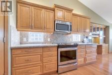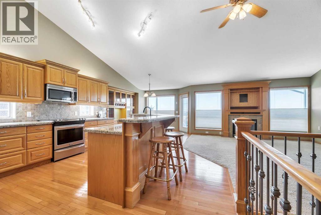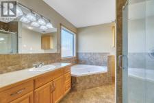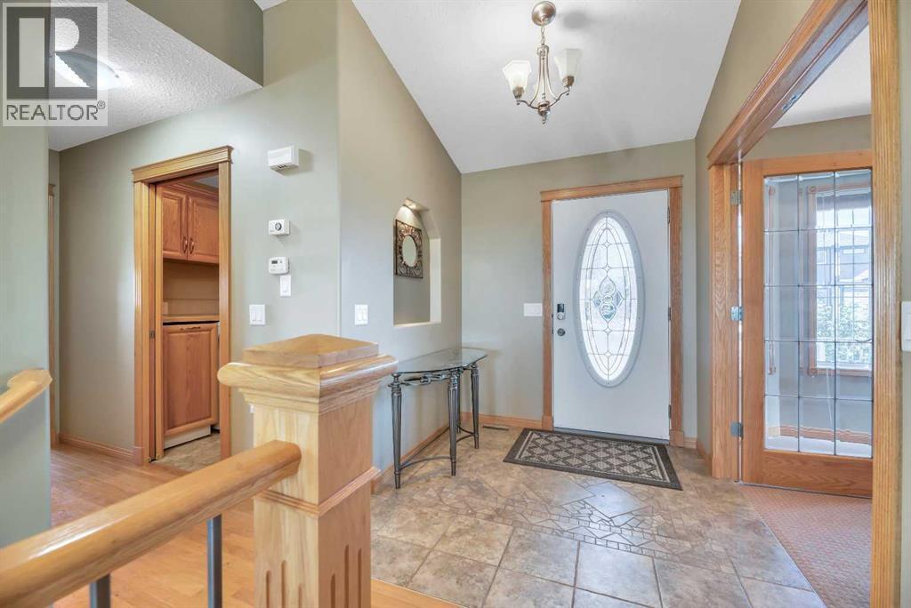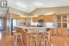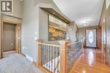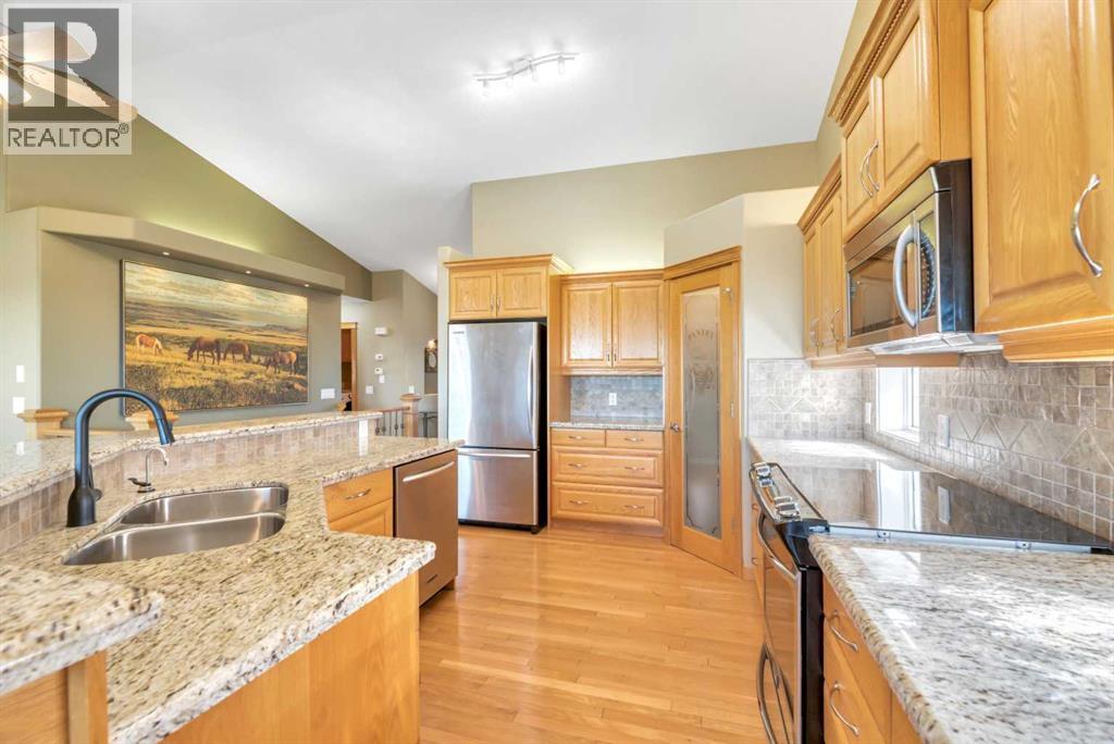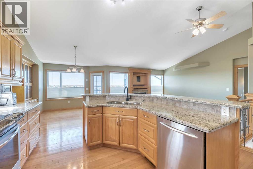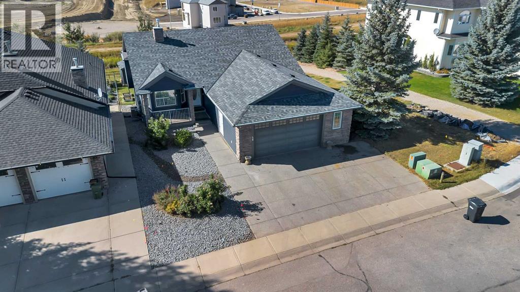 This beautifully designed walkout bungalow combines comfort, style, and an unbeatable setting. Enjoy peaceful mornings on the inviting front porch and take in the serene views of the green space behind, all with low-maintenance landscaping to keep life simple. Step inside to a spacious main floor with vaulted ceilings and gleaming hardwood floors. A French door leads to the den, perfect for a home office. The living room features a cozy gas fireplace, while the bright kitchen offers a breakfast bar, granite countertops, pantry, and flows seamlessly to the dining area with custom built-ins. The primary suite includes a walk-in closet and a spa-like ensuite with a corner soaker tub. Main floor laundry is a bonus, complete with sink and cabinets for added convenience. The fully developed walkout basement expands your living space with a wet bar, built-ins, large rec room, additional bedroom, and a 4-piece bath—ideal for entertaining or family gatherings. Stay cool year-round with air conditioning, and enjoy the practicality of a double attached garage. This home offers the perfect blend of elegance and easy living in a prime location. (id:6769)