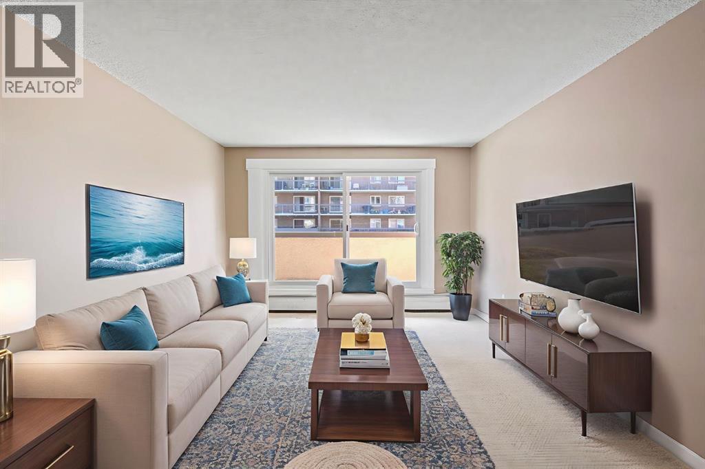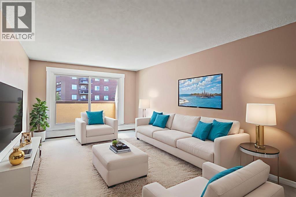 Here’s your chance to own a well-located condo in Calgary’s vibrant downtown core. Offering 2 bedrooms, 1 bathroom, and a spacious living area, this home is an ideal opportunity for first-time buyers, investors, or anyone looking to add value with some updates. The bright living room features large sliding doors that open to a generous private balcony perfect for morning coffee or evening relaxation with city views. The functional floor plan includes a separate dining area, a galley-style kitchen, and a well-sized bedroom, giving you a solid foundation to create your own downtown retreat. With secure building access, convenient on-site laundry, and unbeatable walkability to shops, restaurants, transit, and Calgary’s business district, this condo combines value and location in one package. Bring your vision and make this space your own—whether as a stylish urban home or an income-generating rental property. Don't miss chance to see it today. (id:6769)
