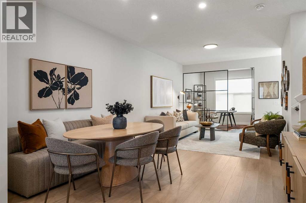 Welcome to the William by Partners Homes, a no-condo-fee townhome in the new North Calgary community of Keystone Creek. With three bedrooms, three full bathrooms, and a central bonus room, this home blends modern style, family-friendly design, and long-term value, all backed by the peace of mind of a new home warranty. The main floor begins with a versatile front flex room that works well as a home office, playroom, or hobby space. An open-concept layout connects the dining and living areas to a spacious kitchen with a large island, gas line for cooking, upgraded hood fan, and plenty of storage. A convenient full bathroom with upgraded shower option completes this floor. Upstairs, the primary suite includes a walk-in closet and ensuite with dual vanity sinks and upgraded shower. Two additional bedrooms, a full bathroom, the central bonus room, and upper-level laundry complete this floor. This home also features a side entrance, and a two-car gravel parking pad. Keystone Creek is a master-planned community in North Calgary where access to the city is at your doorstep. Residents enjoy quieter roads, family-friendly streets, and green spaces throughout. The community features pathways connected to the regional trail system, naturalized wetlands, and parks to explore. Everyday amenities are minutes away, including grocery stores, restaurants, childcare, healthcare, and more. With quick connections to CrossIron Mills, downtown Calgary, and the Calgary International Airport, Keystone Creek offers convenience and a peaceful lifestyle. Book your private showing today and see why the William is one of the most desirable new townhomes in Keystone Creek! (id:6769)