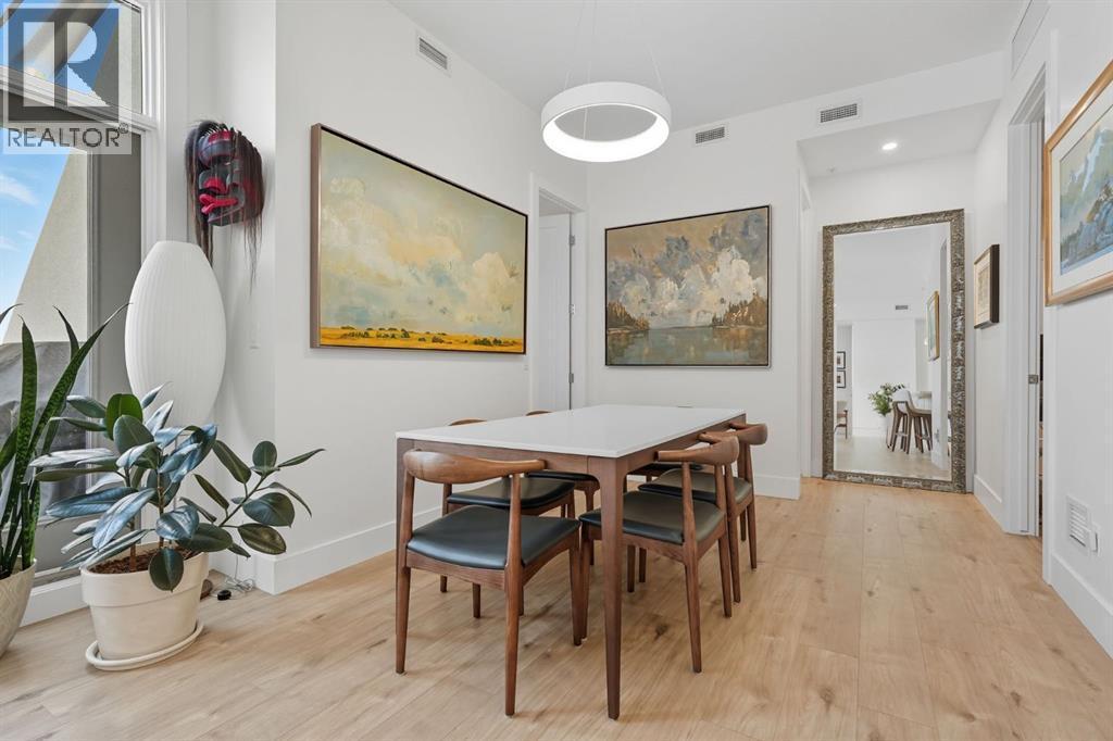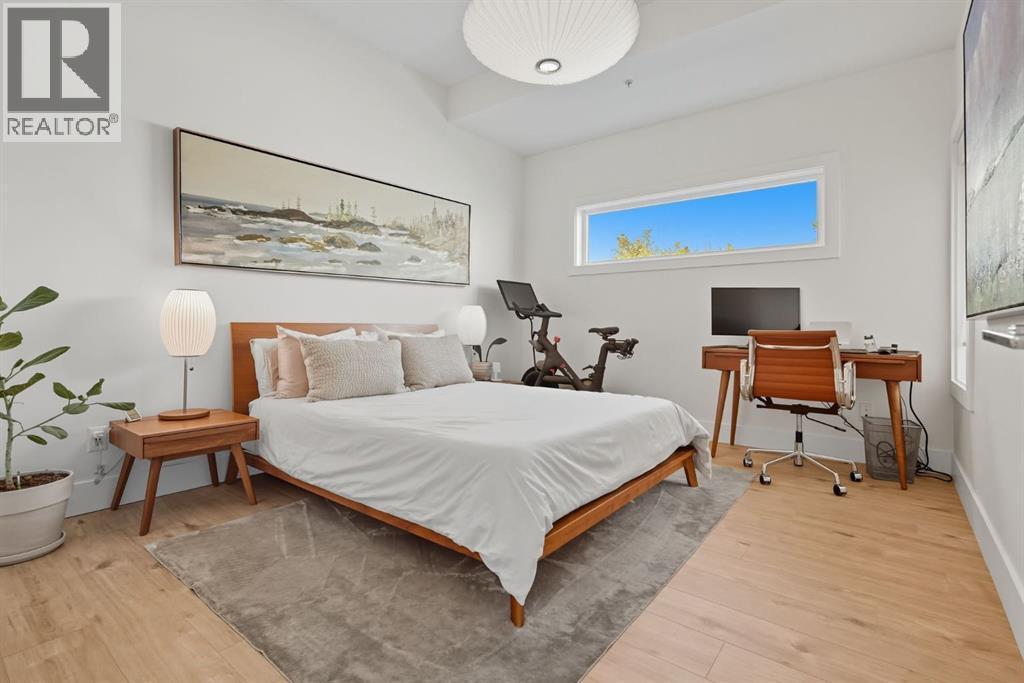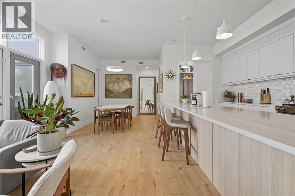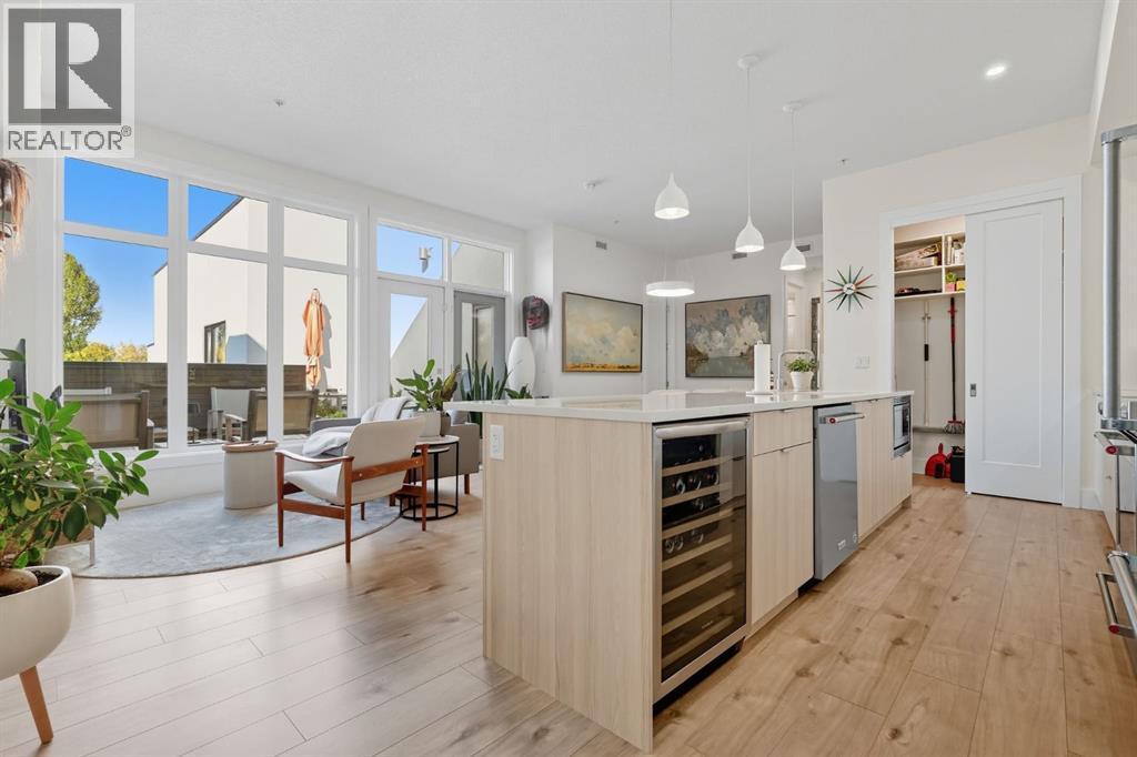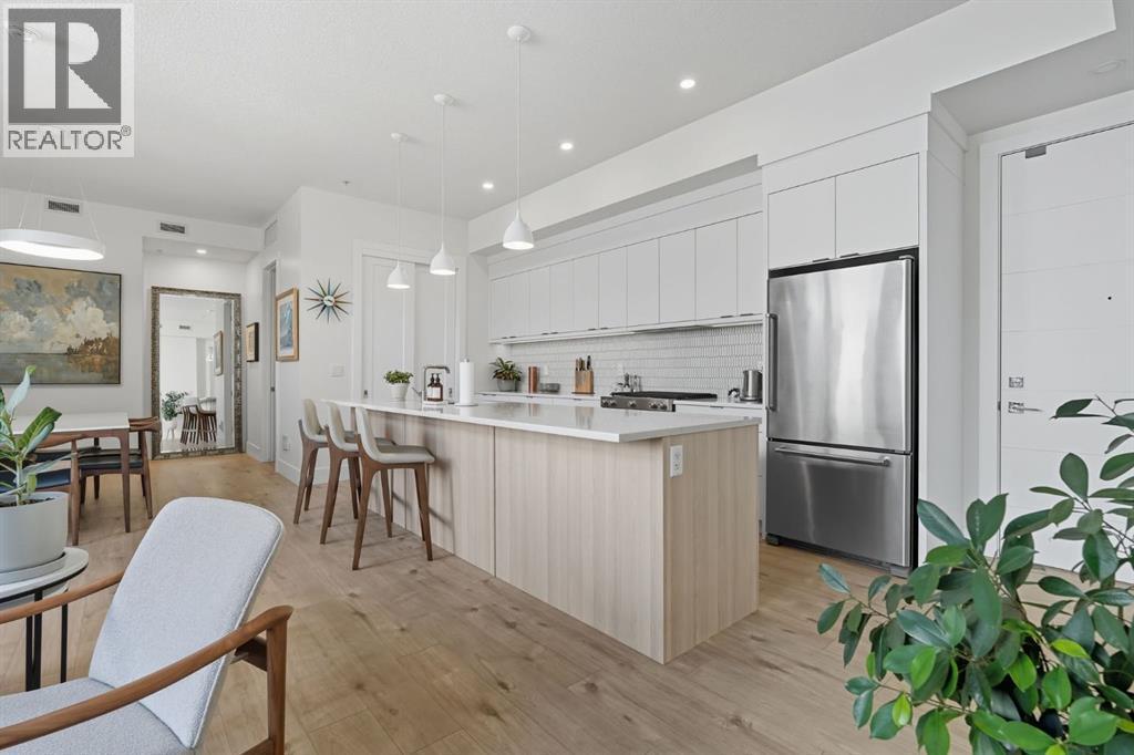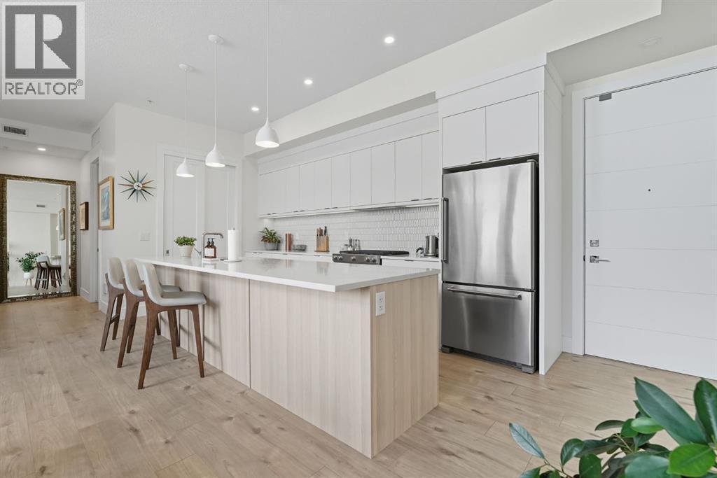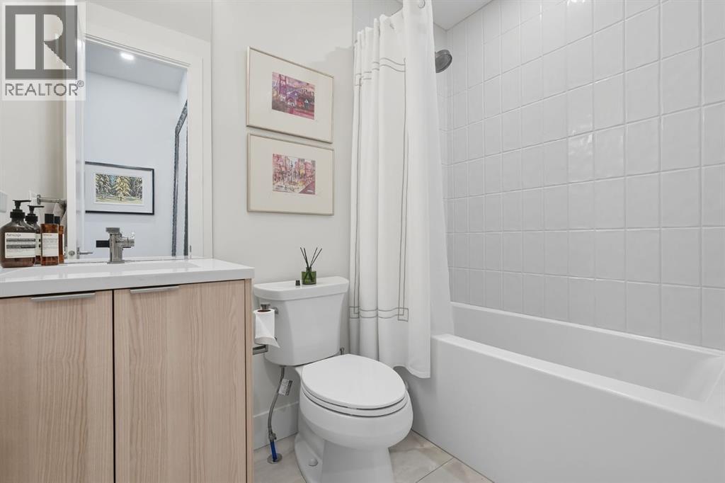 Bright & spacious 3-bed, 3-bath TOP FLOOR CORNER UNIT in this sought-after South Calgary low-rise — offering nearly 1,155 sq ft of living space with 10 FOOT CEILINGS! The heart of this home is the stylish kitchen, beautifully appointed with quartz countertops, sleek cabinetry, stainless steel appliances, a bar fridge and a functional kitchen island with seating. Flowing seamlessly from the kitchen, the open layout features a generous dining area and a sun-filled living room framed by large picture windows that enhance the airy feel. The primary bedroom is a true retreat, complete with a walk-in closet and private 4-piece ensuite. The second bedroom features a 3-peice ensuite, with the third bedroom and 4-piece bath providing flexible options for family, guests or a home office. Additional highlights include a stunning and private outdoor terrace, TWO TITLED UNDERGROUND PARKING STALLS and an assigned storage locker. Residents enjoy superb amenities such as a fitness centre, guest suite, pet wash, secure underground parking with 10 visitor parking stalls + EV charging stall and bicycle storage.Perfectly located in vibrant South Calgary, this home is just minutes to parks, pathways, schools, transit, shopping, and Marda Loop’s wide array of restaurants and cafes. (id:6769)