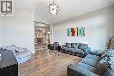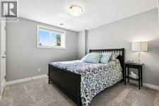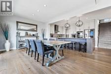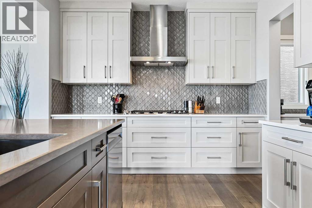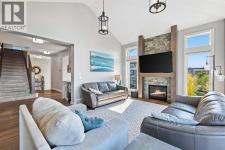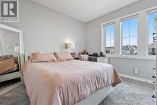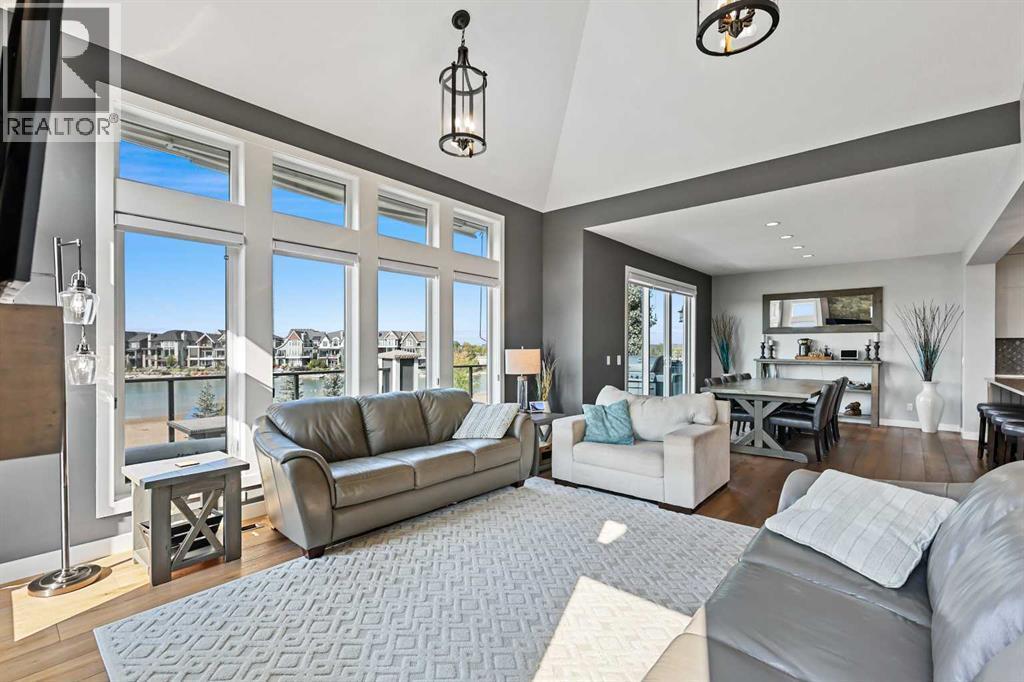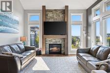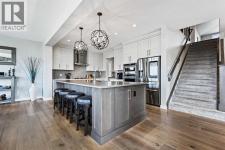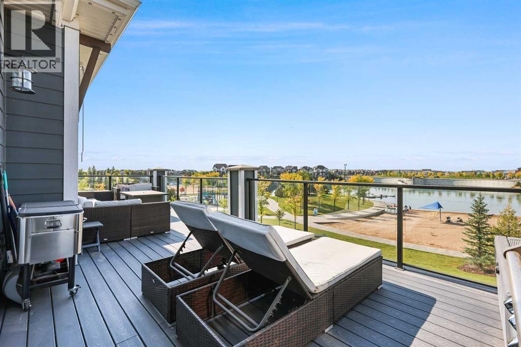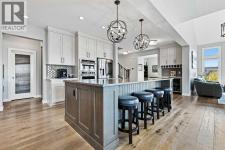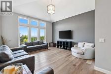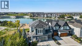This lakefront property in the award-winning family community of Mahogany enjoys a sunny west exposure and backs onto the main beach of this outstanding year-round recreational anchor for the community. The sun, sand and water are always out your back door. Situated on a quiet cul-de-sac you’ll find an estate quality luxury home that has been finely and carefully built by Calbridge Homes in 2016. The “Cascade” floor plan is the base of this customized build that enjoys four well-sized bedrooms upstairs plus a bonus room, an extremely functional and well-planned main floor with a flex/office space along with a walkout basement that has been fully finished by the builder. Ceiling heights are 9 feet throughout all three levels of the home, with several areas on the upper two levels stretching up to 14 feet. This along with the abundant oversized windows, plus extra on the side due to no neighbor, give the maximum feeling of open space and airiness. The anchor of the main floor, the kitchen, gazes masterfully out the massive windows to the glistening lake beyond. Wide-plank hardwood floors, stunning white full height cabinetry with a huge island finished in a darker accent, quartz counters, a built-in coffee bar, butler pantry and walk-in pantry give you a great space to work with. The dining area and outdoor balcony offer you indoor and outdoor dining space comfortably accommodating a larger than average gathering. A living space complete with the gas fireplace takes advantage of the extra windows while the sizeable mudroom off of the triple front drive garage is enough for the whole family and can be locked out of view of your guests. The carpeted staircase leads upstairs where you’ll find the same hardwood floors continue throughout the halls and the vaulted-ceiling bonus room. Four bedrooms up include a primary suite with vaulted ceilings and a view of the lake, that will accommodate just about whatever furnishings you wish, and is supported with a spa like five-piece ensuite with steam shower, soaker tub, double sinks on a raised vanity and a walk-in closet big enough for two. The theme of well-sized rooms carries through the three additional bedrooms, a shared four-piece family bath and a laundry room that is second to none. The finished walkout level has a huge family room with wet bar and full-sized fridge along with a fifth bedroom, a three-piece bathroom, and a storage area currently used as a gym. The west facing windows engulf the space in natural light and invites you out to the professionally landscaped yard which includes artificial grass for maximum versatility. Go out your own gate and you are in the lake and steps from the beach and the water. A few recent adds include a solar power system in 2024 providing a nice offset to energy costs. In addition, the HVAC system was overhauled in 2025 with two new heat pumps/air conditioning and a Rheem tankless hot water system plus a Tesla charger in garage and an upgrade to the fridge, washer and dryer. (id:6769)