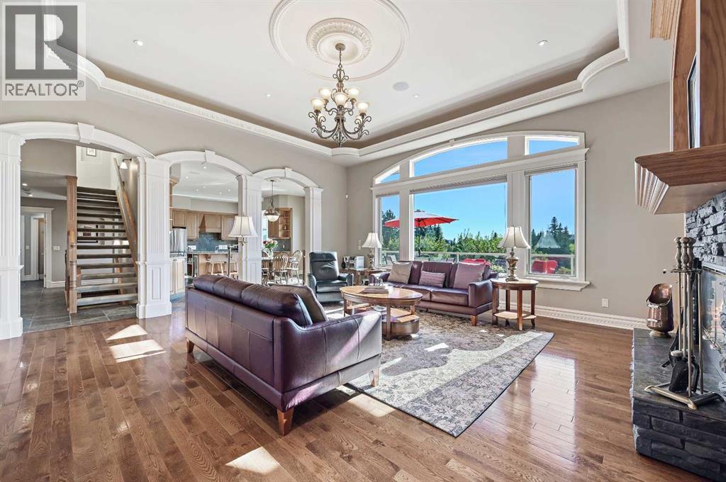 ** Please click "Videos" for 3D tour ** Stunning, original owner custom built Pinehurst masterpiece - backing SE onto a wooded ravine! This sprawling bungalow plus loft features: 5 bedrooms (could add another one in the loft if needed), 5 full bathrooms & 2 half bathrooms, 0.76 of an acre, over 5800 sq ft of developed living space, walkout basement, large concrete deck & lower patio (wired for hot tub), functional outdoor kitchen, 9 ft/10 ft & 12 ft coffered & backlit ceilings, oversized/insulated/heated/finished garage with epoxy flooring/two - 220 V outlets (ready for electric vehicle chargers)/bike lifts, wine/cold room, basement in-slab in-floor heat, in-ceiling speakers throughout, durable clay tile roof, 12 zone underground sprinkler system, unlimited potential in the loft area (813 sq ft of space & full bathroom), theater room comes with 105" screen & rear projector and much more! Location cannot be beat - tucked inside Heritage Pointe, backing SE onto a wooded environmental reserve, great access to all major routes, all schools pick up/close by and all the amenities 3 minutes away in Calgary. The original owners and taken great care of this home - TOTAL PRIDE IN OWNERSHIP & MOVE-IN READY CONDITION! (id:6769)