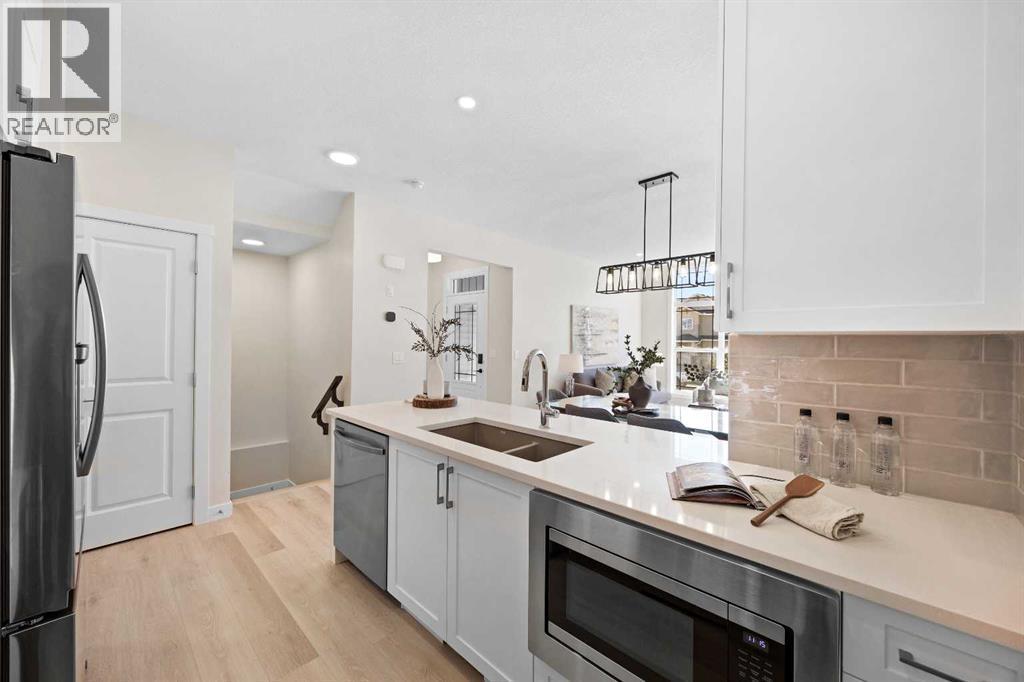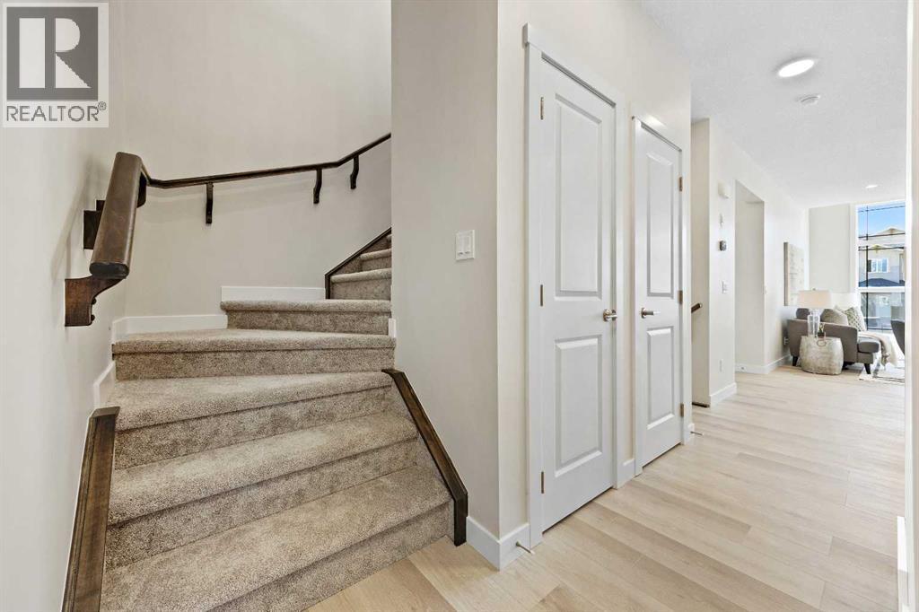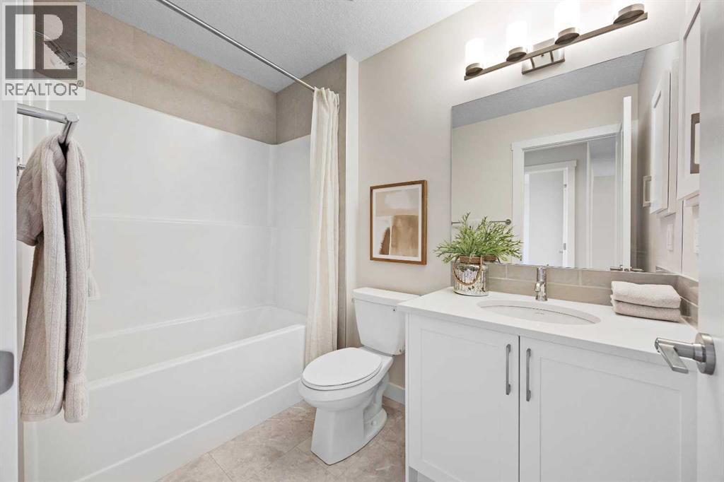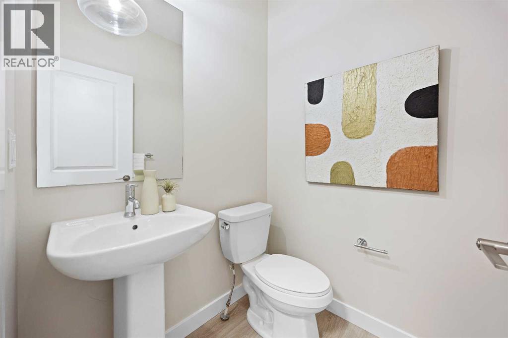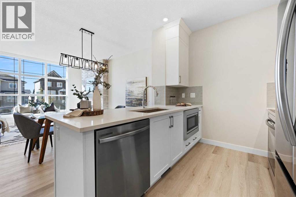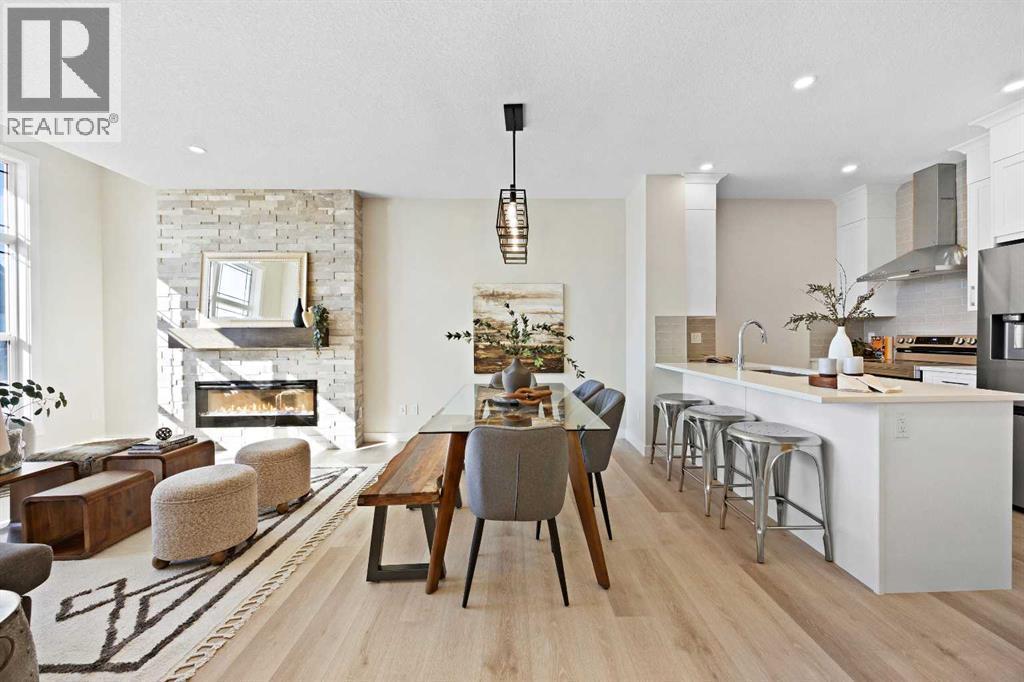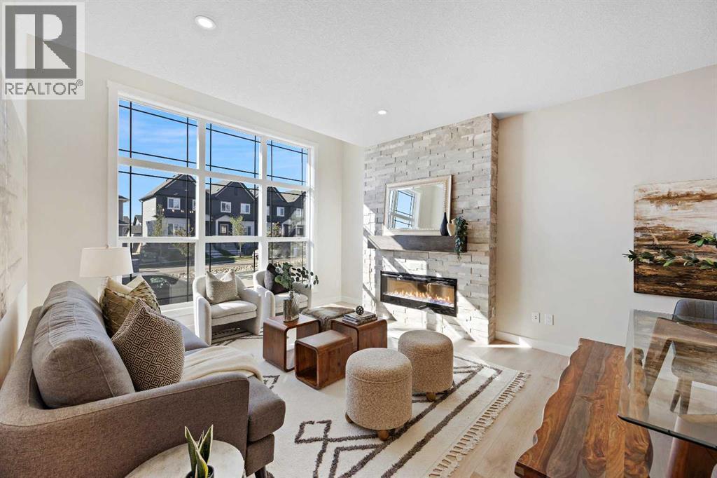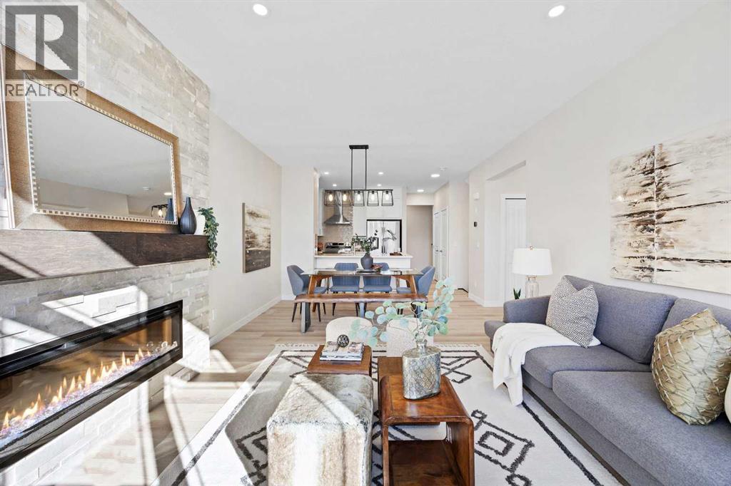 Welcome to the Jasper by Genesis Builders, a beautifully designed townhome with no condo fees in the heart of Bayview. Offering 1,354 sq. ft. of above-grade living space, this home combines modern finishes, functional design, and unique features like a rooftop patio and a 20' x 22' attached double garage. The basement includes 9' ceilings and is ready for your ideas.The main floor offers open-concept living with an inviting layout that’s both bright and practical. The kitchen is finished with stone countertops, stainless steel appliances, full-height cabinetry, and a large island with seating, flowing into the dining area and living room. A feature fireplace adds warmth and style, making the space perfect for both entertaining and everyday living. A half bath, storage, and direct garage access complete this level.Upstairs, the primary suite includes a walk-in closet and private ensuite with a large tiled shower. Two additional bedrooms, a 4-piece bath, and a conveniently located laundry space complete the upper floor. The rooftop patio above the garage provides a private outdoor retreat for relaxing or entertaining.Bayview is one of Airdrie’s most exciting communities, with pathways, playgrounds, an outdoor amphitheatre, basketball courts, and tennis courts that convert to a skating rink in the winter. With easy access to schools, parks, and the canals, Bayview offers both lifestyle and convenience. Area size was calculated by applying the RMS to the blueprints provided by the builder. Taxes to be assessed (id:6769)