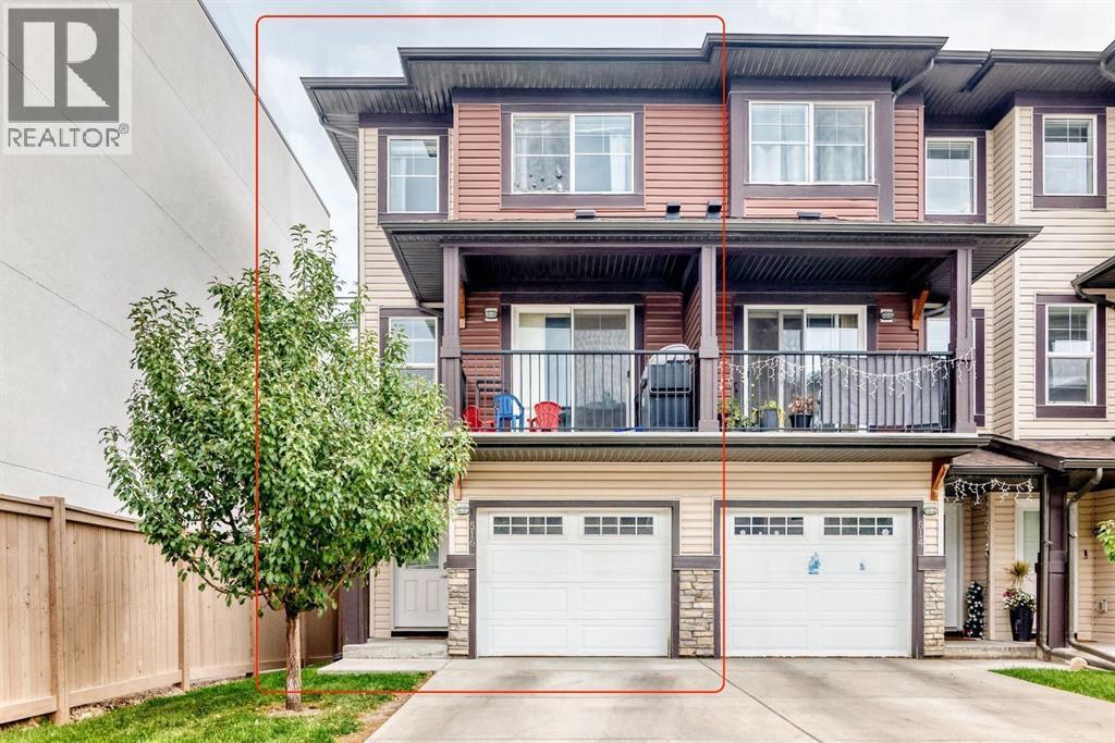 | Attached Garage With Driveway | Vaulted Ceiling | Bright Interior | Finished Walk-Out Basement | Welcome home to this beautifully designed END-UNIT WALKOUT townhome, built in 2016 in the sought after neighbourhood of Sage Hill! Surrounded by community pathways that run along the picturesque environmental reserve and great access to amenities, there is no better place to call home. With an abundance of windows, you will love the bright and airy atmosphere of this modern and meticulously maintained townhome, featuring over 1,500 Sqft of living space. The Home has attached garage, full size driveway, private entrance greets you upon arriving at the home,spacious living room with 12-foot vaulted ceiling, huge windows, and back deck facing the semi-private green space! The gourmet kitchen features ceiling-high cabinetry complete with under cabinet lighting, granite counters, upgraded stainless steel appliances, and contemporary laminate flooring. The kitchen island has a flush eating bar with two-tone cabinetry and an undermount sink. The balcony has a gas line, and is adjacent to the dining area with plenty of space for your whole family. Perfect for entertaining! The top-most floor is home to the private owner’s retreat complete with his-and-her closets and 5-piece ensuite (dual vanity with granite countertop and undermount sinks). Across the hall is the 2nd bedroom with its own ensuite and walk-in closet. The side-by-side laundry closet with front loading washer and dryer is located near the bedrooms for maximum convenience and features plenty of storage space. You will love the flexibility made possible by the finished walk-out basement space which can be used as an office, spare bedroom, or bonus room. Step out onto your private patio and enjoy the green space that sits just behind the home. There is a LARGE storage space that runs under the front entrance, and the property has A/C roughed in. (id:6769)
