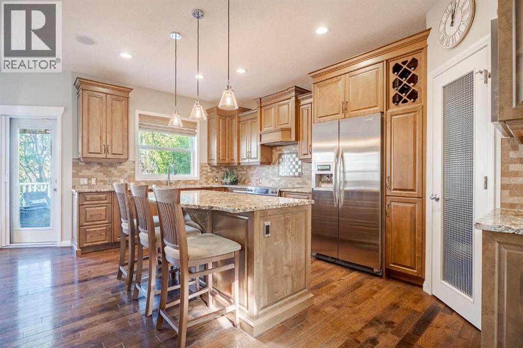 This stunning five-bedroom walkout home truly has it all in the loved SW Airdrie community of Coopers Crossing. Ideal location sitting on quiet cut de sac with immediate access to pathways, close to schools. From the moment you step into the two-storey foyer with its signature sculptured ceiling, you’ll feel the quality and care that went into every detail. The designer Layne kitchen features granite counters, rich maple cabinetry with 42” uppers and lighting, and top-of-the-line stainless steel appliances. Built-ins on every floor add timeless style and function. Upstairs, four generous bedrooms including a serene primary suite with a spa-inspired ensuite with a jetted tub, heated tile floors, and large walk-in closet. Comfort meets convenience with central air, in-floor heat in both the garage and walkout basement, designer window coverings throughout, and ultra-durable wood plank flooring on the walkout level and hardwood on the main. Outside, enjoy a stamped concrete patio, beautiful mature landscaping, underground sprinklers, and a fully fenced backyard oasis complete with a large storage shed with lights! An oversized 23.5ft x 21.5ft finished attached garage (did I mention has heated floors?!) rounds out this executive home in Airdrie’s premier community of Coopers Crossing. Don't delay come see this come sweet home today! (id:6769)