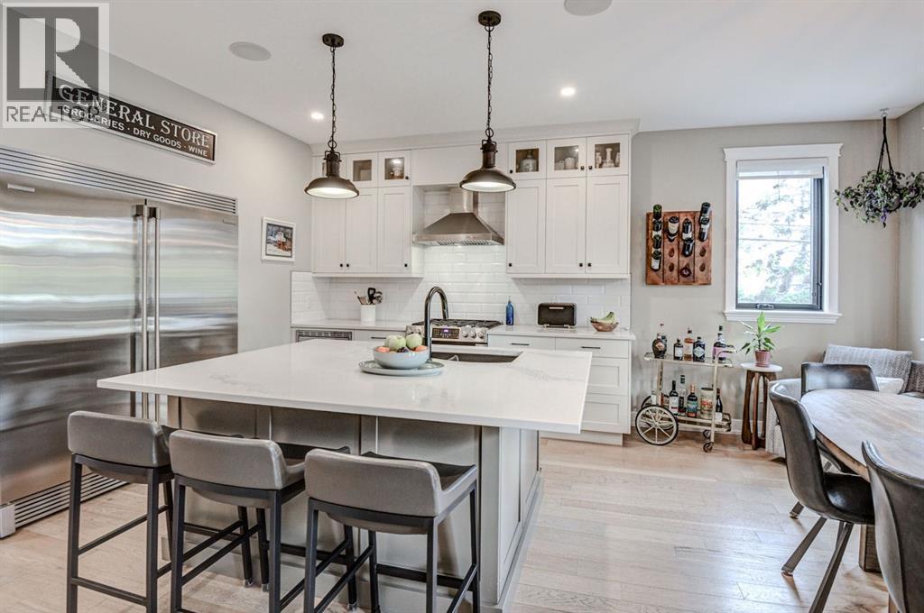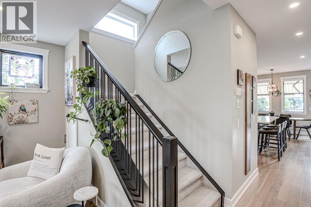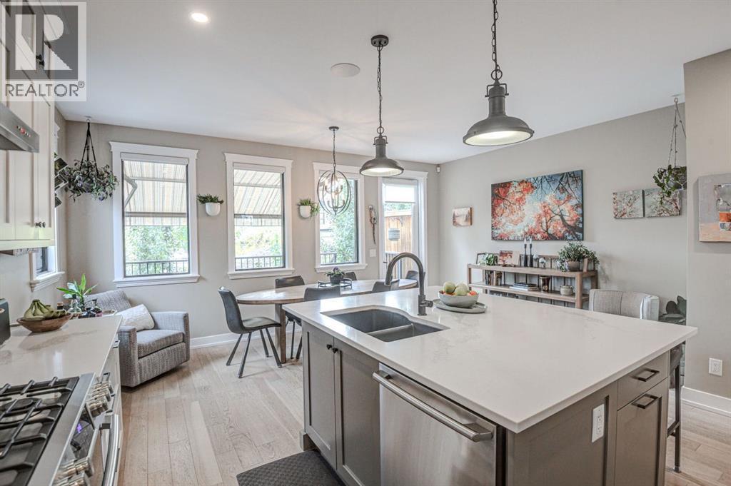 OPEN HOUSE SATURDAY OCT 11- 1 :00pm to 3:00pm **Spectacular** Brownstone Townhome in Altadore S.W. Calgary – 3 Bed, 3 Bath | End Unit | Over 1,900 Sq. Ft. This elegant and rare brownstone offers over 1,900 sq. ft. of refined living across 2 spacious levels, with a third-floor rooftop patio that boasts stunning downtown views. Access your heated double attached garage directly off the back lane. As the end unit with 8 extra windows, this home is flooded with natural light and designed for both luxury and functionality. Located just steps from River Park, Sandy Beach, top-rated schools, shops, and dining—this home delivers the perfect balance of urban living and community charm. Main Floor Features: Bright layout with 10’ ceilings; Wide-plank white oak engineered hardwood flooring; Huge gas fireplace with whitewashed brick surround; Custom 8-ft barn door and hidden kid/pet playroom under the stairs: Modern dual-tone kitchen featuring: 60” Electrolux fridge/freezer, Gas stove, range hood, microwave, garburator, and Large walk-in pantry with wood shelving; Quartz countertops, under-cabinet lighting, and extra-tall cabinetry; South-facing deck off the kitchen with motorized awning, artificial turf, and outdoor heater; Fully fenced private yard, unique to this complex; Front patio area. Second Floor – Private Living Quarters: Spacious primary suite with Spa-inspired ensuite featuring double sinks, in-floor heat, quartz counters, and private water closet; Walk-in closet with window; Two additional large bedrooms; 4-piece main bathroom with upgraded finishes. Third Level – Rooftop Patio Retreat: Access your private rooftop dura-deck patio; Panoramic downtown skyline views—ideal for relaxing or entertaining. Additional Features: Double attached heated garage with mudroom and utility area; Triple pane windows, High-efficiency furnace, central A/C; Water softener & reverse osmosis water filter system; Built-in stereo system on both floors; Solid-core 8-ft interior doors, pot lights, upgraded lighting; High-end window coverings including PVC shutters. This home is part of an exclusive 6-unit complex where no units have ever sold through MLS—a truly rare opportunity. Impeccably maintained and move-in ready, this brownstone home delivers the best of luxury, location, and lifestyle in one of Calgary’s most sought-after communities. (id:6769)