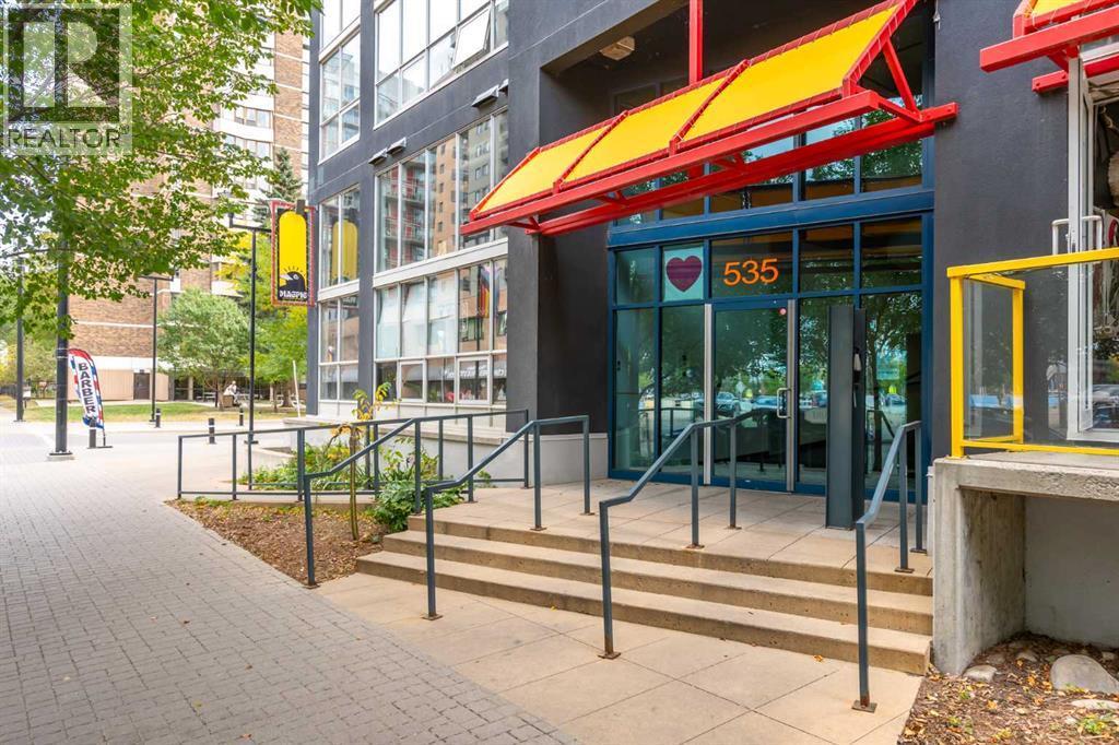 Welcome to urban living at its finest in the iconic Orange Lofts! This bright and spacious loft offers soaring ceilings and a spectacular 16x16’ glass wall with unbeatable views. The open-concept design creates the perfect flow for both everyday living and entertaining.The stylish kitchen is complete with high-gloss acrylic cabinetry, sleek quartz countertops, and stainless steel appliances, making it a chef’s delight. The bathroom has been thoughtfully updated with a stand-up shower and sliding glass doors, offering a spa-like retreat.Upstairs, you’ll find a large bedroom with abundant closet space, while thoughtful upgrades throughout the unit—including automatic black out blinds, laminate flooring and fresh paint—add modern comfort.This home also includes a titled underground parking stall, ensuring convenience year-round. Step outside to the rooftop patio with two gas BBQs, perfect for hosting friends while enjoying breathtaking city views.Located in the heart of Downtown East Village, you’ll be steps from trendy restaurants, cafés, shopping, river pathways, public transit, and just minutes to vibrant Inglewood.Don’t miss your chance to own in one of Calgary’s most sought-after loft buildings! (id:6769)