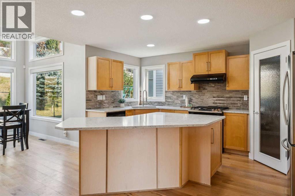 **OPEN HOUSE THIS WEEKEND, Sunday, October 19, 1pm - 4pm** Welcome to a home that perfectly complements the way you live, offering room where you need it, comfort where you want it, and a design that simply feels right. Set on a quiet, family-friendly street and backing onto a tranquil green belt, this beautifully refreshed detached home boasts more than 2,900 sq ft of flexible living space. Step inside to soaring ceilings, fresh paint, wide plank engineered hardwood, and large windows that flood the interior with natural light. The main floor showcases a thoughtful open-concept plan that unites the kitchen, dining, and living spaces; ideal for everyday routines and memorable gatherings. At the center is an updated, modern kitchen featuring quartz countertops, gas range, sleek cabinetry, and generous prep space for everything from quick weekday meals to festive celebrations. The bright dining area offers clear views of the backyard, while the living room with its inviting gas fireplace provides the perfect setting for cozy nights in. Just off the kitchen, an open den works well as a home office, creative studio, or study nook. Completing the main floor are a powder room and laundry area with direct access to the double attached garage. Upstairs, you’ll find four spacious bedrooms together on one level. A rare and highly desirable layout. Brand new carpet extends throughout the entire upper level, creating a fresh, inviting feel from room to room. The private primary suite, located at the front of the home, is a true sanctuary with lofty ceilings, abundant natural light, and a calm, retreat-like ambiance. It features a generous walk-in closet and a spa-inspired ensuite with dual sinks, a deep soaker tub, and a tiled walk-in shower. The three additional bedrooms are impressively sized, with two offering walk-in closets of their own. This level is especially well-suited to families, ensuring everyone enjoys their own space while remaining connected. The fully finished basement extends the living area even further, offering a large rec room that can easily adapt to your lifestyle; whether as a fitness zone, media lounge, or playroom. A spacious fifth bedroom and full bathroom make it an ideal setup for teenagers, extended stays, or multi-generational living. Outdoors, the backyard opens onto a serene green belt, creating a natural backdrop. Sip your morning coffee on the deck, enjoy evening strolls along nearby pathways, or watch the kids play in a yard that feels like an extension of the home. Nestled in one of Calgary’s most desirable neighborhoods, Springbank Hill offers the best of both worlds: peaceful surroundings with convenient access to top-rated schools, parks, shopping, transit, and quick escapes to the mountains. With its rare four-bedroom upper level, stylish updates, finished basement, and unbeatable location, this property truly has it all. Come see why this is the home you’ve been waiting for. (id:6769)
