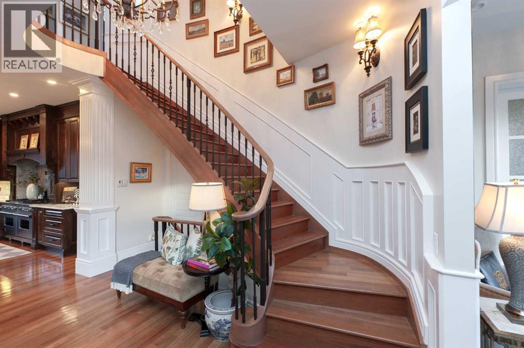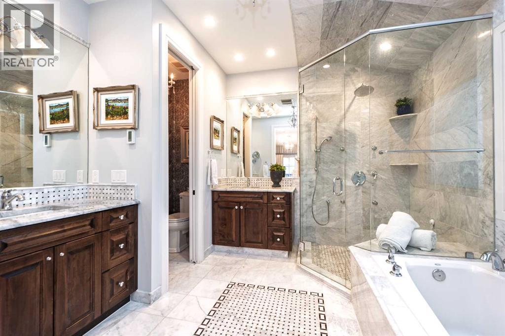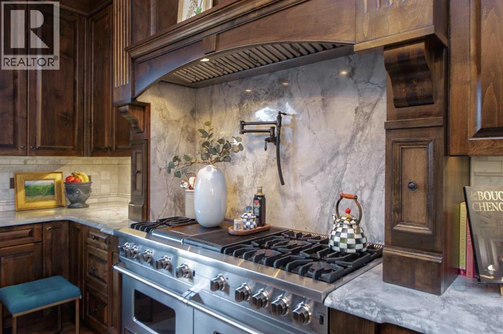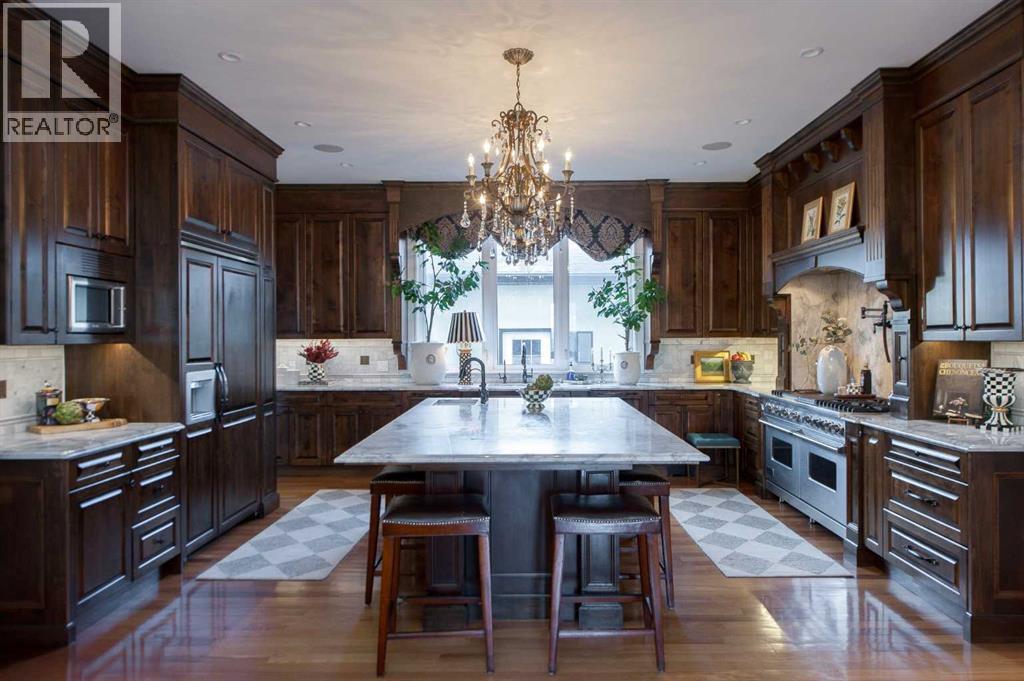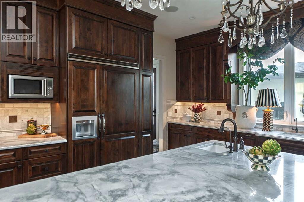 Experience unparalleled luxury in this breathtaking estate with sweeping downtown Calgary views. The grand foyer with travertine floors, rich wood moldings, and a crystal chandelier sets the tone for elegance. A chef’s dream kitchen boasts Viking appliances, 6-burner range, double ovens, twin dishwashers, custom cabinetry, oversized island, and butler’s pantry with wine fridge. Entertain in the formal dining room with marble-hearth fireplace or relax in the spacious living room and private office. Upstairs, the primary suite features a private balcony and spa-inspired marble ensuite, with three additional bedrooms and a dual laundry. The lower level offers a wet bar, wine room, gym, guest suite, and entertainment space. Enjoy a heated 3-car garage, five dishwashers, three laundry sets, integrated Sonos, app-controlled lighting, automated drapery, and advanced security. Outdoors, retreat to a private backyard oasis with clubhouse, stamped concrete patio, and perennial gardens. This home is the ultimate blend of elegance, comfort, and modern convenience. (id:6769)