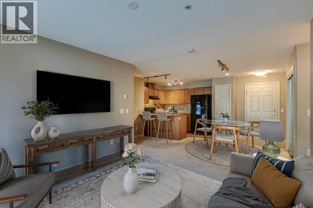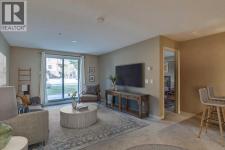 This well-kept main floor condo offers practical living with 2 bedrooms, 2 full bathrooms, and a den. Ok, you got me, it’s a tiny nook that is barely big enough for a desk, but the developer called it a den, so I am too. The open layout has a bright living and dining area that connects to an efficient kitchen with lots of counter space, a pantry, and room for a few stools at the peninsula. The primary bedroom is big enough for a king bed, has a large walk-through closet, and a full 4pc ensuite. The spare bathroom features a walk-in shower. The unit includes heated underground parking with a storage cage in front, and the parkade also has a car wash bay, making winter living easier. The building is well managed with amenities that include a fitness center, sauna, steam room, hot tub, and a recreation room with a kitchen and pool table. Outside, there is a shared BBQ and picnic space, and Crystal Ridge Golf Course is only minutes away. You’ll also be able to enjoy lake access, with year-round activities like fishing and skating this winter, or swimming and paddling next summer. Note: some images have been virtually staged. (id:6769)