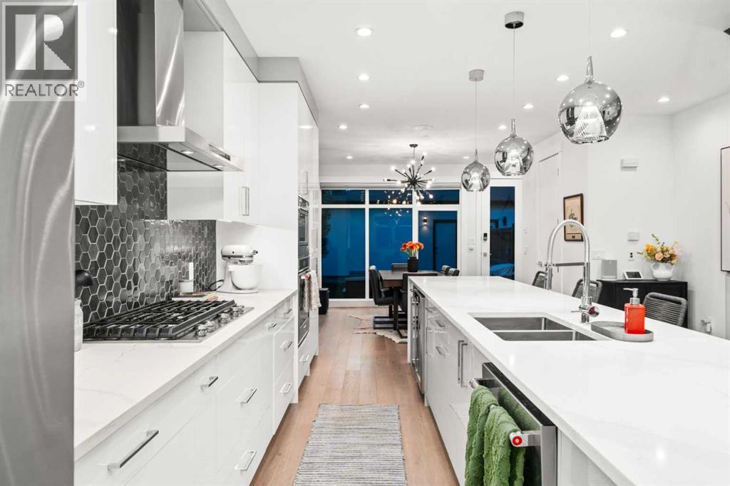 **OPEN HOUSE: SATURDAY, OCT. 4th from 12-2PM & SUNDAY, OCT. 5th from 1-3PM**Welcome to this stunning inner-city infill offering over 1,600sf of luxury living space, complete with a FULLY DEVELOPED BASEMENT, 4 bedrooms, and 3.5 bathrooms. Perfectly located on a QUIET STREET near a cul-de-sac with very little traffic, just a 15-minute walk to MARDA LOOP and the BOW RIVER PATHWAYS, and only a 5-minute drive into downtown, this home blends upscale comfort with unmatched convenience.Step inside and be greeted by an expansive open-concept main floor anchored by a SHOW-STOPPING KITCHEN ISLAND with WATERFALL COUNTERTOP, ideal for both everyday living and entertaining. The kitchen showcases TIMELESS WHITE CABINETRY, premium STAINLESS STEEL APPLIANCES with a GAS RANGE, and flows into a SPACIOUS DINING ROOM overlooking the backyard, perfect for hosting family gatherings or dinner parties. LUXURY VINYL PLANK flooring extends throughout the main floor, enhancing the home’s seamless flow and modern aesthetic. High-end finishings are showcased throughout, including a striking GLASS RAILING that extends from the basement to the upper level. The home is also WIRED FOR SOUND, allowing you to create the perfect atmosphere for any occasion. ARCHITECTURAL LIGHTING, both inside and out, elevates the ambiance while large EAST AND WEST FACING WINDOWS will bring bright mornings and sunny afternoons.The primary suite is a true retreat, featuring a spa-inspired ensuite with a JETTED SOAKER TUB, GLASS-ENCLOSED STAND-UP SHOWER, and a large WALK-IN CLOSET. Two additional upstairs bedrooms, and a fourth in the basement provide plenty of flexibility for family, guests, a home office, or gym.Outdoors, enjoy beautifully LANDSCAPED GARDENS, METICULOUSLY MANICURED GRASS, and MATURE TREES throughout the property, offering both curb appeal and privacy. The WEST-FACING BACKYARD is perfect for relaxing, entertaining, or BBQ'ing. The DOUBLE DETACHED GARAGE easily accommodates a full-sized truck wit h room to spare. The exterior garage wall facing the backyard serves as the perfect canvas to add a projector screen, creating your own private outdoor movie nights.Located just off the corner lot, this home enjoys the benefits of AMPLE STREET PARKING and open exposure while maintaining a quiet residential feel. With SHAGANAPPI C-TRAIN STATION just a 5-minute walk away and QUICK ACCESS TO CROWCHILD TRAIL, commuting anywhere in the city is simple and convenient.This is more than just a home, it’s a lifestyle. Call your favourite Realtor for a private viewing today. (id:6769)