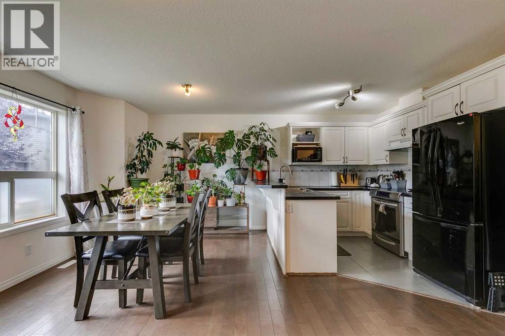 Ideally located close to schools and shopping, this 4 bedroom 3.5 bathroom townhouse is a great option for young families, first time buyers, or investors. The monthly fees are among the lowest of any townhome project in town, and the complex is well managed with a healthy reserve fund. The main floor has an open concept design with lots of natural light, and the kitchen features white cabinets and a raised breakfast bar with seating. Off the dining area is access to a small patio and BBQ space with a patch of grass that provides separation from the neighbors. The home is tucked into a quiet cul de sac with no through traffic, making it an excellent setting for kids. Upstairs are 3 bedrooms and 2 full bathrooms including a primary with double closets and a 3 piece ensuite. The fully finished lower level offers a large recreation room or TV area, a 4th bedroom with a good sized window, and another 4 piece bathroom with tile flooring. A single attached garage adds convenience and is especially welcome in the winter. (id:6769)