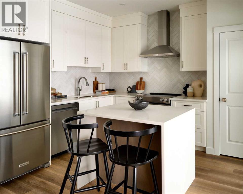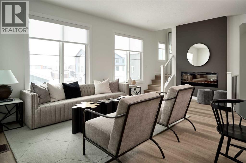 LIMITED TIME PROMOTION - Choose 2 of 3: | FREE A/C (SUPPLY & INSTALL) | 2 YEARS FREE CONDO FEES | $5,000 TOWARD WINDOW COVERINGS! The Armstrong by Brookfield Residential offers style, comfort, and convenience in the heart of Livingston. This brand-new, upgraded home features 3 bedrooms, 2.5 bathrooms, two private balconies, and a private double attached garage. The open-concept main level is ideal for entertaining, with a timeless kitchen showcasing full-height cabinets, quartz countertops, stainless-steel appliances including a chimney hood fan and built-in microwave + a spacious island for additional dining space. A bright living area with south-facing windows floods the space with natural light, while the dining area seamlessly connects to the kitchen. On the upper level, the ~11’x12’ primary retreat includes its own private balcony as well as a walk-in closet and ensuite with a walk-in shower. The upper level is completed by two additional bedrooms, a full bathroom, and laundry. Upgrades include A/C rough-in, a gas line for your BBQ on the main level balcony, and durable LVP flooring on the entry stairs. With nearly 1,200 ft² of living space (RMS: 1,170 / Builder: 1,255), this home is perfect for professionals, small families, or investors seeking a hassle-free property. Complete with full builder and Alberta New Home Warranty, this is your opportunity to enjoy the comfort and convenience of a brand-new home in one of Calgary’s most desirable new communities. Start enjoying the maintenance-free lifestyle this winter with no more snow shovelling! (id:6769)