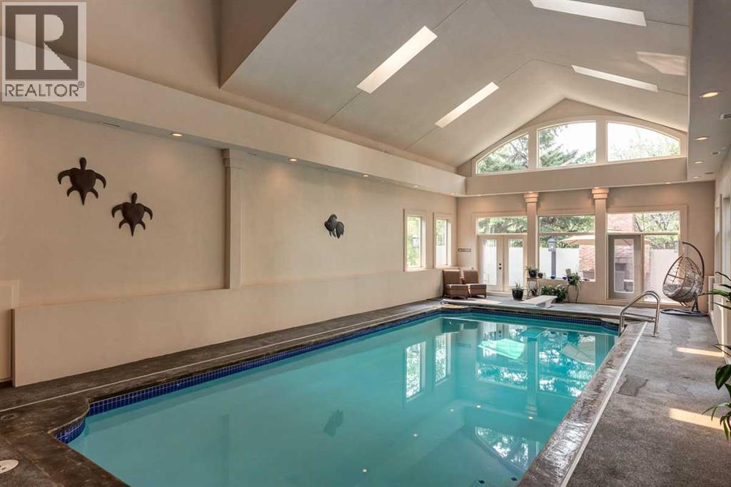 Welcome to this one of a kind dream home nestled in the exclusive and private neighbourhood of Pinehurst. Escape the city vibe when you enter this secluded neighbourhood and massive 1.2 acre property. Enjoy the natural setting while surrounded by an environmental reserve, forrest and streams. You won’t think you are anywhere close to the city. This completely custom-built retreat offers the perfect blend of tranquility and luxury. Every aspect of this estate has been created with luxury and comfort in mind. As you enter through the solid Fir front door you are greeted by exceptional design and well planned architecture. Starting with the incredible one of a kind curved open riser staircase with solid cherry wood handrails and continuing with the soaring vaulted ceilings and floor-to-ceiling windows, every detail reflects sophistication and elegance. Wide-plank cherry hardwood floors flow seamlessly throughout the main level, where multiple living areas offer a harmonious connection to the beautiful outdoors and forrest views.This home boasts over 10,500 sq ft of incredibly upgraded living space, providing room and entertainment for everyone and everything. With six spacious bedrooms and seven bathrooms, there's no shortage of space or amenities for large families. The heart of the home is the massive gourmet kitchen, featuring top-tier stainless steel appliances, granite countertops, and a convenient pot filler. The wraparound, multi-tiered deck and concrete patio with an outdoor kitchen and brick fireplace is perfect for outdoor dining and entertaining.Ascend the gorgeous staircase to the upstairs level with the primary suite that will blow you away, offering hardwood floors, vaulted ceilings, and a private balcony overlooking the pool. The spa-like ensuite bath includes a steam shower, large stand alone tub, beautiful tile and a private balcony. Three additional bedrooms are located on the opposite side of the floor, including one with a 4-piece ensuite and two sharing a Jack & Jill bath. A cozy homework or hangout space with a fireplace completes this level.The walkout basement is designed for entertainment, featuring a family room, games area, bar, theatre room, gym, and two additional bedrooms.There is a plethora of upgrades in this home but none more amazing than the large indoor pool, with its own sealed room for safety and independent HVAC system for maximum comfort. Additional features include multiple tile surround gas and wood burning fireplaces, large home office, three steam showers, in-floor heating with multiple zones, a dual coil hot water heater, maintenance-free concrete decks, irrigation system, 4 car heated and finished garage, built in speakers, custom entertaining bar in the basement and the list goes on… (id:6769)