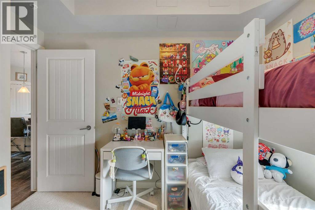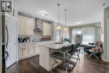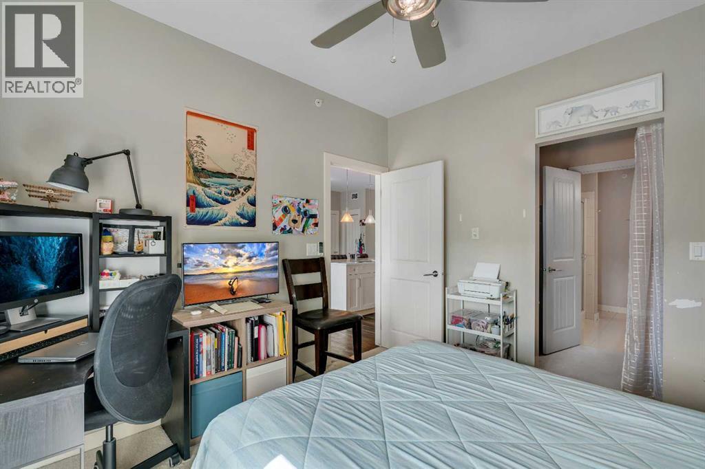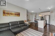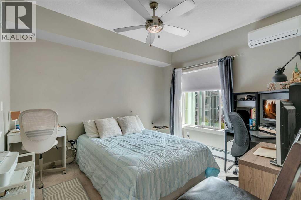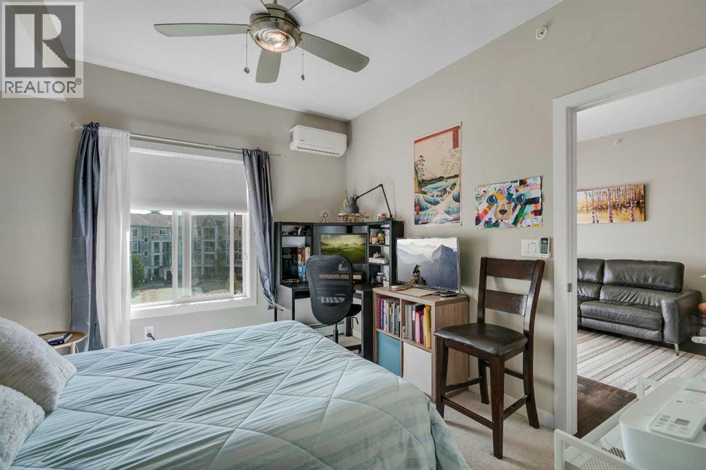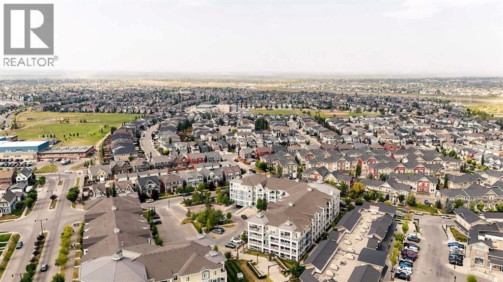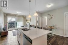 Top floor, maintenance-free living awaits in this highly sought after lake community offering year round activities and exceptional lifestyle opportunities. Modern finishes and grand 9’ ceilings enhance the open floor plan with durable vinyl plank flooring uniting each space. Culinary adventures are inspired in the beautiful kitchen featuring granite countertops, stainless steel appliances, timeless subway tile, a centre island to casually gather and a pantry for extra storage. Entertain friends in the adjacent dining area or unwind in the inviting living room that flows seamlessly to the balcony through a patio slider. Enjoy indoor and outdoor living with a covered south facing balcony that includes a gas line for easy barbeque hosting while soaking up the sunshine. Air conditioning ensures comfort throughout the seasons. Retreat to the primary bedroom complete with a private ensuite boasting dual sinks and an oversized shower. A second bedroom is thoughtfully placed on the other side of the unit along with a 4pc bathroom providing ultimate privacy. In-suite laundry adds everyday convenience. Titled underground parking and an assigned storage locker further elevate the value of this well managed building. Location is unmatched with Auburn Station commercial amenities, transit, Prince of Peace School and Auburn Bay Dog Park all within walking distance. Seton’s shops, restaurants, YMCA and the South Health Campus are a quick drive away. Best of all, residents enjoy access to Auburn Lake with swimming, boating, fishing, skating and community events creating a vibrant year round lifestyle. This top floor home combines modern comfort, functional design and the unmatched lifestyle of Auburn Bay! (id:6769)