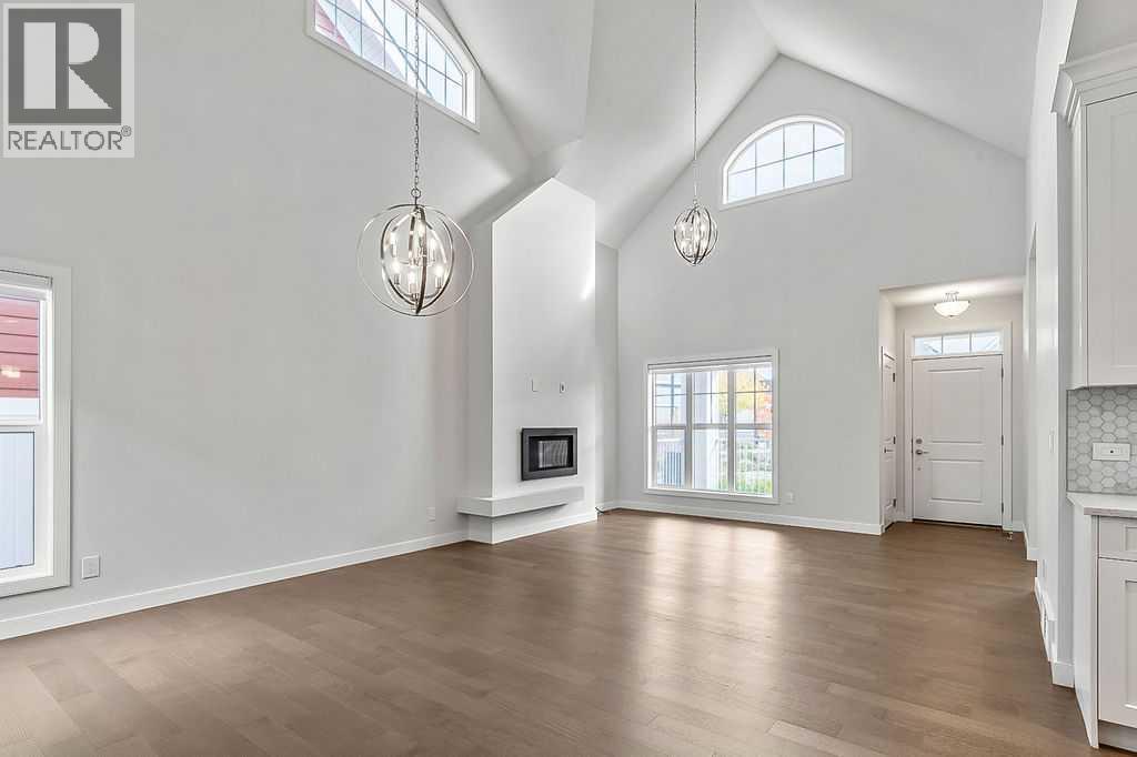 Looking for that perfect bungalow villa? Look no further! Located in the Parkhouses of Drake Landing, this is a stunning home built in the original phase of this complex by Lifestyle Homes. Although built in 2019, the home was not sold and occupied until September of 2022 after the project had gone into receivership. The complex is now complete and this is your chance to get into a stunning unit which shows like new way below the asking price of the new units which start at $715,900. Enter this immaculate home to beautiful hardwood, freshly painted walls, soaring vaulted ceiling, Hunter Douglas Silhouette blinds throughout, and you will think it is brand new! Extremely well taken care of with pride of ownership throughout. Beautiful location looking onto the courtyard with no houses behind. Open layout showcasing a stunning floor to ceiling feature gas fireplace in the living room, large windows with incredible natural light, dining room with access to the huge deck (17'x11') and access to the side yard with an apple tree, shrub, & plenty of space for you to add your personal touches. The chefs dream kitchen is unbelievable! Appliances include the very high end Fisher & Paykel built-in oven, refrigerator, microwave with convection, & cooktop. Rounding out that is the Miele dishwasher plus quartz countertops. Two spice pullouts on each side of the cooktop add to the functionality for the cook in the family! A corner pantry, breakfast nook & large island complete this stunning kitchen. The primary bedroom features a large ensuite with gorgeous o/s shower, 2 sinks, & walk-in closet. Another bedroom is at the front and could be used as an office if desired. The laundry room is large with Samsung appliances and leads to the double attached insulated garage. Lots of storage space & linen closet on the main floor as well. The basement has been left unspoiled for whatever the buyer desires and does include a rough-in bath. The vinyl front porch (15'9"x8'8") overlooks the courtyard and all the wild life that wander through including deer & rabbits. There is also a front garden just below the porch to enjoy and personalize. This is truly a community minded project with a gathering place where residents come together every Friday to visit around the firepit. This is also a great area to enjoy with visiting family & friends. Lots of visitor parking provided throughout the complex. A perfect lock & leave if you like to travel with landscaping & snow removal taken care of. Emergency ladders & escape hatches have been added for protection around the window wells and certified safety equipment is in place for safety of the occupants in the shower, etc. All the details taken care of so you can just move in and enjoy this friendly community spirited villa complex. A great opportunity to get in this area at a desirable price point. Close to all amenities including shopping, parks, golf, the incredible pathway system throughout Okotoks, and more. Come view today! (id:6769)