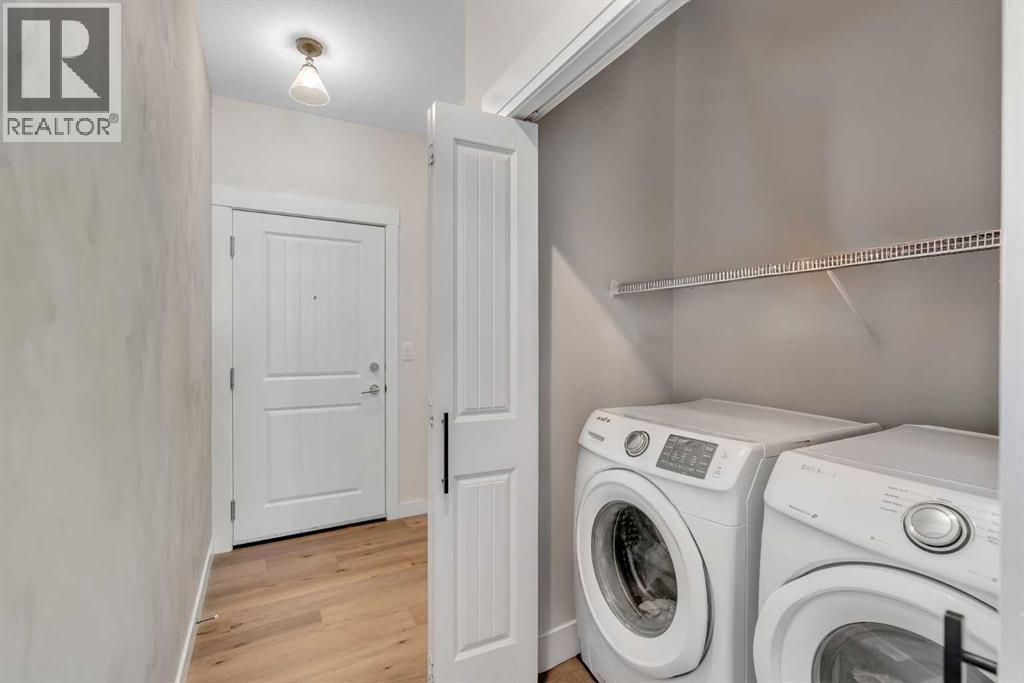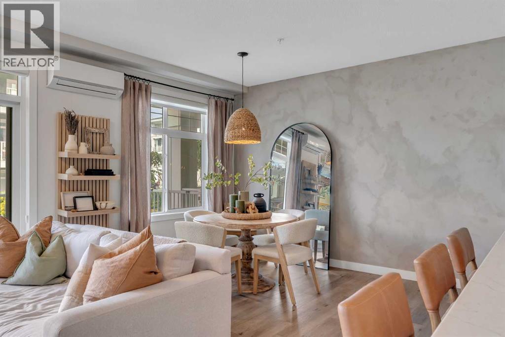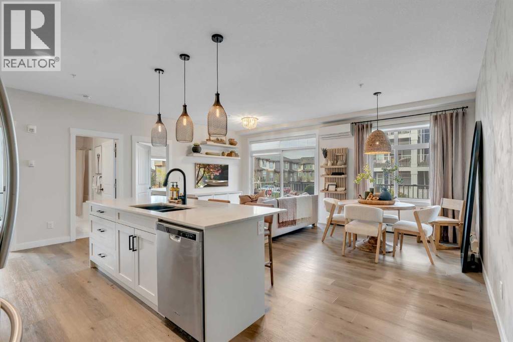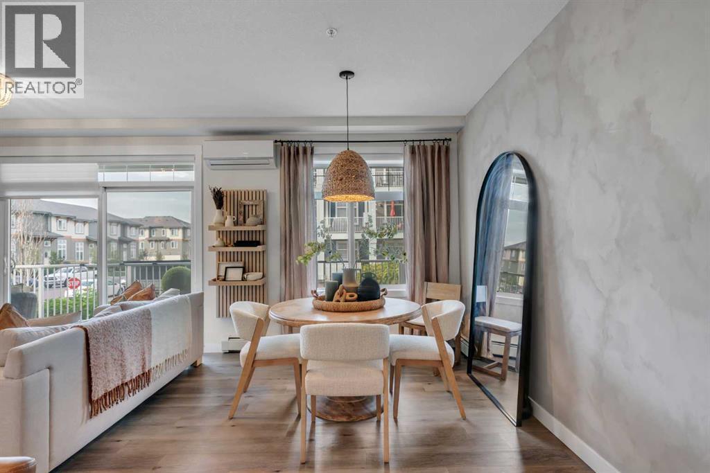 Welcome to 114, 200 Auburn Meadows Common SE. This spacious 2-bedroom, 2-bathroom corner unit offers 922 sq. ft. of stylish living space with soaring 9’ ceilings and upgraded luxury vinyl plank flooring throughout, including the bedrooms. The open-concept design seamlessly connects the living, dining, and kitchen areas, creating the perfect flow for both everyday living and entertaining. The kitchen is a true standout, featuring quartz countertops, stainless steel appliances (with a slide-in stove), full-height cabinetry, and upgraded lighting for a modern, high-end feel. The primary suite and secondary bedroom are both generously sized, with carefully designed touches like feature walls. Designer closets space by California Closets are found in the main entry closet to maximize organization and style. The second bathroom also features a designer accent wall for added character. The living room boasts a custom built-in wall unit under the TV, while the large windows allow for plenty of natural light. Step outside onto your spacious patio, which is slightly raised for privacy and not facing the parking lot — perfect for relaxing or entertaining. A BBQ gas line is already installed, and custom blinds and drapery add a touch of elegance. Practicality meets comfort with air conditioning, in-suite laundry, an assigned storage locker, and a titled underground parking stall. The building itself is pet-friendly (with board approval) and includes elevator access and visitor parking. Best of all, you’ll enjoy exclusive year-round lake access through the Auburn Bay HOA — from summer beach days to winter skating. Plus, this location puts you within walking distance of Auburn Station shopping, restaurants, transit, Seton YMCA, South Health Campus, and the upcoming Green Line LRT. Move-in ready and packed with upgrades, this condo offers an unbeatable blend of lifestyle, convenience, and value in one of Calgary’s most desirable communities. (id:6769)