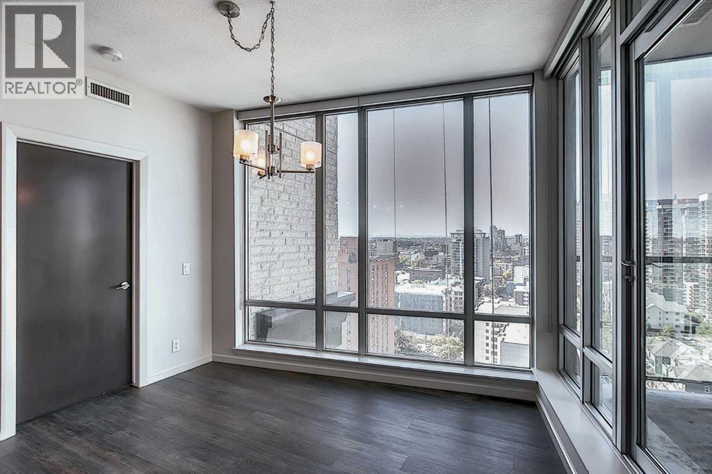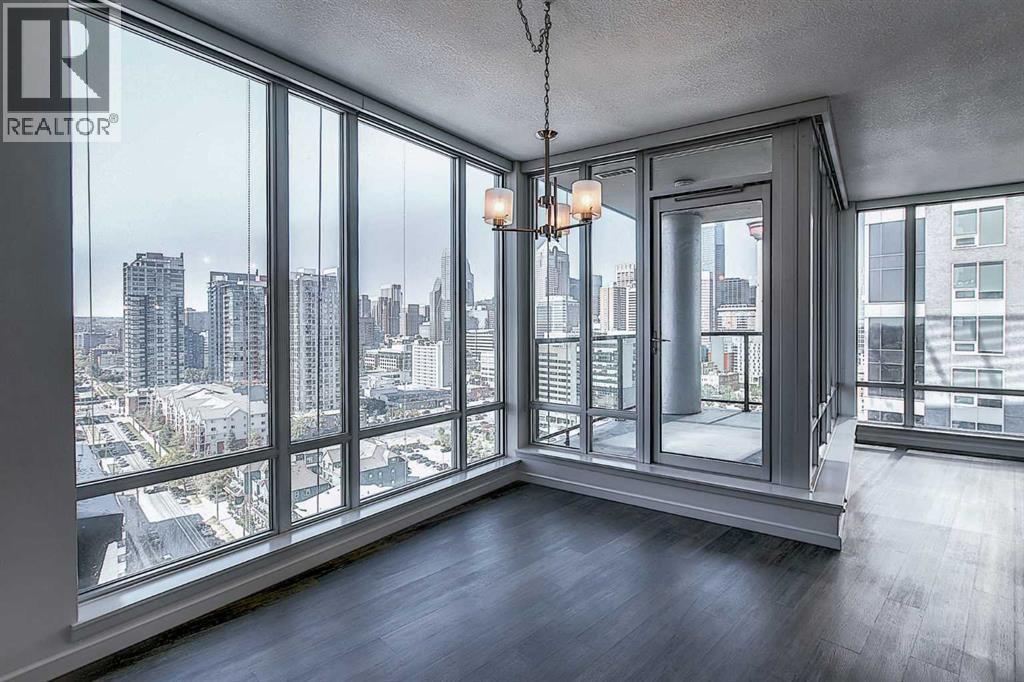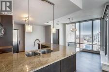 Exceptional 16th-Floor Unit with Breathtaking Panoramic Views! This beautifully appointed unit on the 16th floor offers stunning, uninterrupted views of both the mountains and downtown skyline. Ideally situated within close proximity to the LRT and the MNP Community & Sport Centre, this residence combines convenience with luxury. The upgraded interior features high-quality finishes, including maple cabinetry, granite countertops, stainless steel appliances, luxury vinyl flooring, tile, and floor-to-ceiling windows that maximize natural light and panoramic vistas. The entryway includes a walk-in coat closet with custom built-in storage for added organization. A dedicated home office area is integrated into the layout, complete with a granite work surface. The in-suite laundry room offers additional storage space for everyday practicality. The generously sized second bedroom enjoys remarkable views and includes a walk-in closet with a convenient cheater door leading to a well-appointed bathroom featuring a large walk-in shower. The kitchen, with its modern design, opens seamlessly to the dining and living areas, creating an ideal space for entertaining. The private balcony extends the living space outdoors, offering an excellent setting for barbecuing or simply taking in the spectacular scenery. The comfortable living room provides an inviting atmosphere for relaxation and social gatherings. The primary bedroom is a peaceful retreat, showcasing expansive views and a walk-through closet that leads to a luxurious four-piece ensuite bathroom. Residents also enjoy access to a well-equipped amenity center, which includes an exercise room, hot tub, sauna-equipped dressing rooms, a gathering space with pool table, theater room and patio access, one being the rooftop! Additional features include assigned storage and one titled parking stall. Located just a couple of blocks from the Stampede Grounds and the C-train station, this prime location offers easy access to downtown am enities, dining, entertainment, and much more. Book your showing and come on Buy! (Current tenant willing to stay if looking for an investment property. The photos are from previous now tenant occupied) (id:6769)