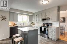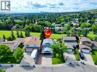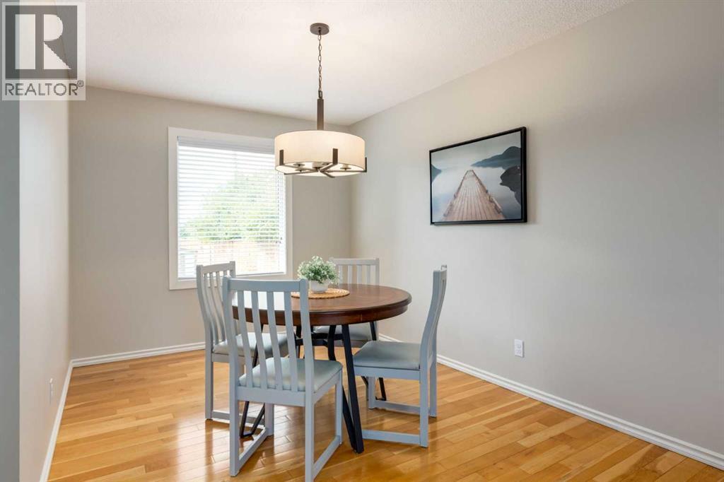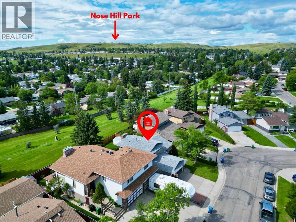 Tucked away on a quiet cul-de-sac, this original-owner home offers extensive updates, timeless charm, and an unbeatable location! This thoughtfully maintained property rests on a flat lot with a sunny south-facing backyard that opens directly onto a tranquil greenbelt walking path leading directly up to Nose Hill Park — a rare and coveted feature. Stepping inside the home, the main floor showcases gleaming hardwood flooring throughout the living room, dining room, hallway, and staircase. Light floods the home through new metal-clad windows and sliding doors. The kitchen is the heart of the home, featuring a large window overlooking the backyard, ample cabinetry, a moveable island, and newer appliances including a dishwasher and oven. It's open to the cozy family room, where a wood-burning fireplace with gas light, a brick surround, and wooden mantle create a warm, inviting atmosphere. This space flows seamlessly out to the spacious newer deck, complete with gas line for your BBQ—perfect for relaxing evenings or entertaining guests. Outside, the meticulously maintained yard includes a raised vegetable garden, storage shed, lawn, and privacy thanks to the newer rear fence and retaining wall. The steel siding has been freshly painted, new exterior lighting adds nighttime charm, and new 4" eaves and downspouts protect the home for years to come. Back inside a bright eating nook and the open, airy front living room along with a bedroom and 2pc powder room complete the main level, while a convenient main floor laundry area adds everyday ease. Upstairs, the primary retreat is a serene space with private access to a second deck that overlooks the peaceful backyard and greenbelt. A 4-piece ensuite and modern touches throughout provide style and privacy, creating a peaceful haven. Two additional bedrooms, a 3pc bathroom complete this upper level. The partially finished basement offers flexibility with a bedroom, including an egress window, bathroom rough in, and a large recre ation space, all awaiting your final touches. Additional features include solar shades in the primary bedroom, family room and kitchen, updated lighting throughout, a newer roof, only 5 years old, and parking for up to five vehicles—a rare find in such a prime location. This is a true gem: a lovingly maintained, extensively updated home on one of Beddington’s best streets. Whether you're enjoying a morning coffee on your private deck, gardening in the afternoon sun, or entertaining friends in the evening, this charming abode is waiting to welcome you home. (id:6769)