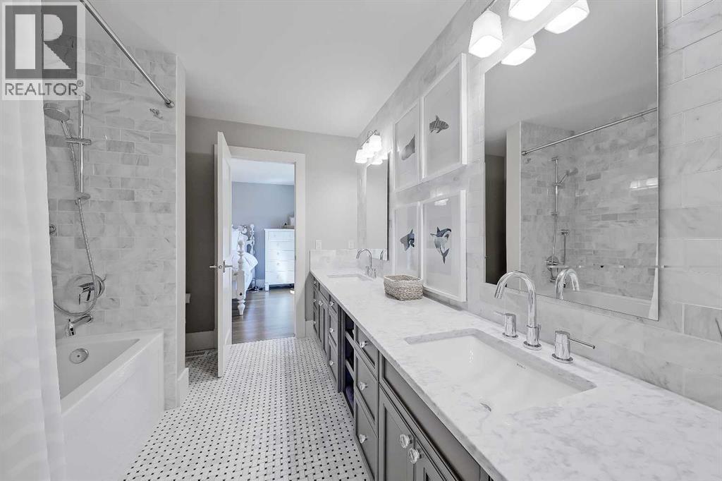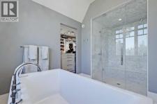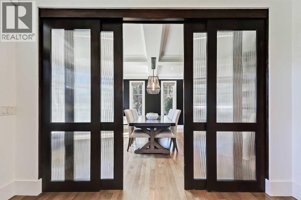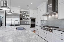 *VISIT MULTIMEDIA LINK FOR FULL DETAILS, INCLUDING IMMERSIVE 3D TOUR & FLOORPLANS!* Exquisitely crafted and set on an expansive 60’ x 100’ lot across from a tranquil greenspace in Glendale, this custom estate home offers more than 5,400 sq ft of fully developed living space with 5 bedrooms, 4.5 bathrooms, serene outdoor escapes, and an oversized, insulated/drywalled double attached rear garage. A rare offering in the inner city, this residence boasts an estimated rebuild cost exceeding $3M. The timeless façade is composed of acrylic stucco, wood shake, and cultured stone, enhanced by pitched rooflines, landscaped grounds, and exposed aggregate walks. Inside, a stained-glass front door opens to a bright foyer with site-finished hardwood, crown mouldings, and custom millwork. A front office with coffered ceilings and built-ins overlooks the greenspace, while the formal dining room boasts coffered ceilings, designer lighting, and a seamless connection to the butler’s pantry with dual beverage fridges, quartz counters, prep sink, and extensive cabinetry. The gorgeous chef’s kitchen showcases custom cabinetry with organizers, a marble-topped island, premium Thermador appliances (fridge/freezer, dual wall ovens, gas cooktop, hood fan), and an Asko dishwasher. A walk-in pantry provides extra storage, while the casual dining nook with French doors opens to the patio, allowing for easy indoor-outdoor living. The living room features a panelled wall, quartz-framed gas fireplace, oversized windows, and built-in speakers. A stylish powder room and a mudroom with built-ins complete the main level. Upstairs, four bedrooms (a rarity in the inner-city) include a front bedroom with vaulted ceiling, walk-in closet, and ensuite, plus two bedrooms sharing a Jack & Jill bath with dual sinks, marble counters, and a tiled tub/shower. The primary retreat offers vaulted ceilings, spa-inspired ensuite with heated herringbone floors, freestanding tub, steam shower, and an enormous walk-in clo set with custom built-ins. A vaulted reading nook and a well-equipped laundry room add convenience. The basement is designed for entertaining with 9’ ceilings, in-floor heating, a rec room boasting a projector and screen, and a kids’ play nook. A gym/sports room with puck board walls doubles as a 6th bedroom, while a guest bedroom and full bath complete the level. Outdoors, two aggregate patios, cedar soffit lighting, outdoor speakers, a BBQ gas line, and a zoned irrigation system enhance the fully fenced yard. Additional features include dual high-efficiency furnaces, A/C, on-demand boiler with hot water tank, Sonos system, and central vacuum. Set in Glendale, one of Calgary’s most desirable communities, this home offers estate-level living with family-friendly charm, excellent schools, parks, and quick access to downtown and major roadways. Schedule your private showing today! (id:6769)