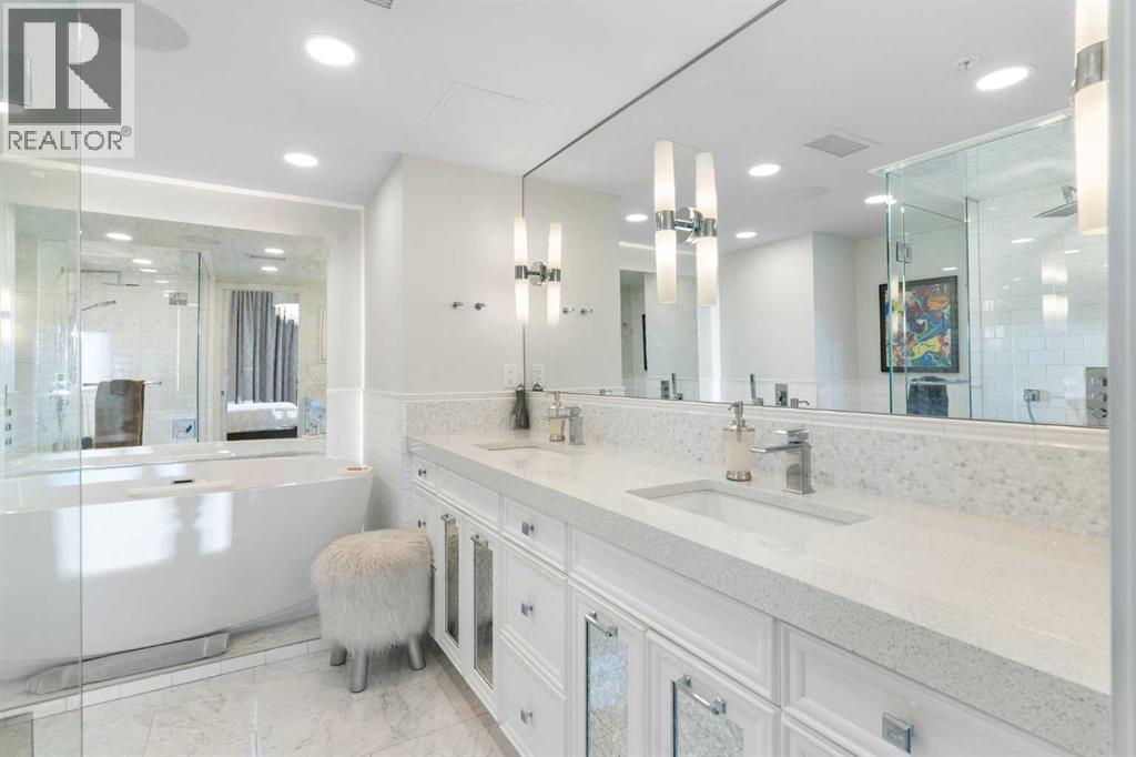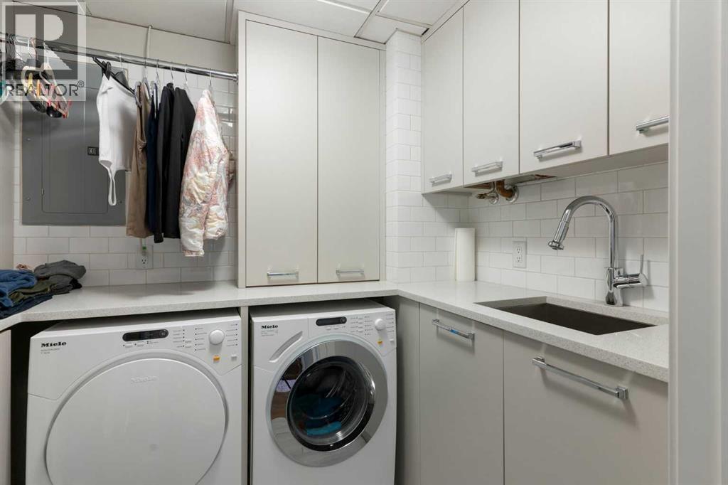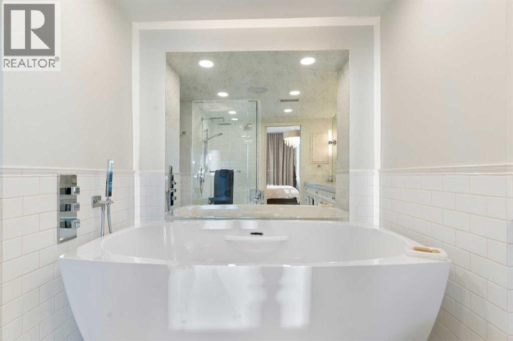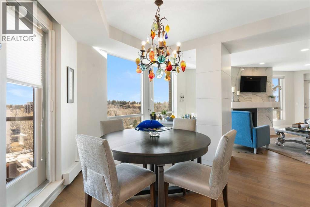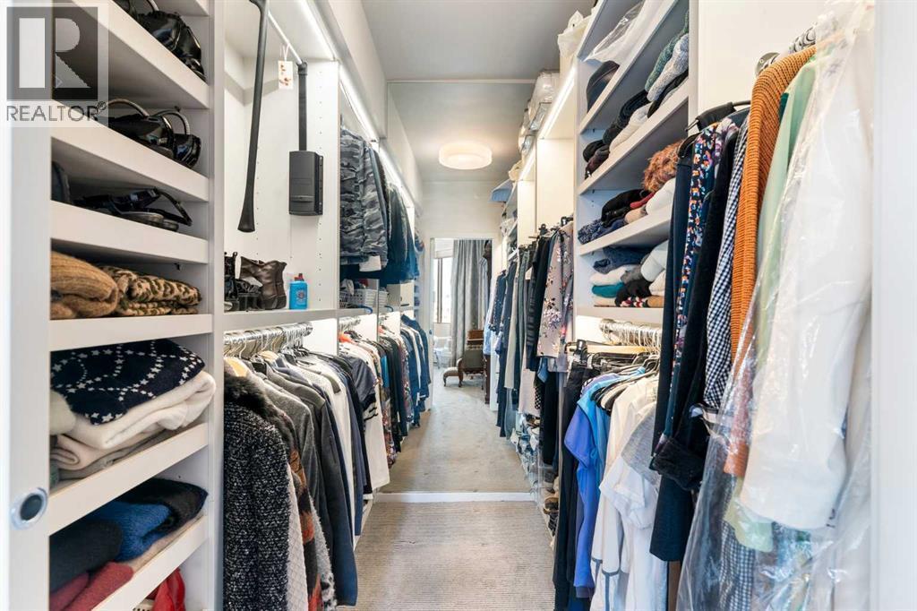 Thinking about downsizing but everything is too small? Welcome to The Grandview, where luxury living meets breathtaking views in the heart of Calgary's Mission neighborhood. This spacious 2 bedroom, 2 bathroom, 2 underground parking stalls plus DEN unit has had a half a million dollar renovation completed by Paul Lavoie Interior Design. Every inch of the unit has been updated. The custom kitchen boasts quartz countertops and top-of-the-line appliances, including brands such as Wolf, Sub-Zero, and Miele, pantry and island creating a chef's haven. All custom cabinets, millwork and closet organizers throughout the condo were completed by Empire Kitchen and Bath. The bright spacious living room has River Valley views from every window, a custom fireplace plus access to 2 huge decks. The dining room features custom built-in storage. The primary suite is a sanctuary of its own featuring downtown views, spacious walk-in closet and luxurious 5 pc master bathroom that includes a huge walk-in shower, double vanities and impressive stand alone tub. The 2nd bedroom is adjacent to the main bathroom. The den has a built-in desk and storage plus lots of flex space for a home gym. Enjoy beautiful engineered hardwood throughout the main living area. Other features include: Full laundry room with sink, grand foyer, in-suite storage & separate storage room plus Control 4 home automation. The Grandview boasts a range of amenities including The Lang House, a heritage home perfect for hosting, as well as another party room in the complex with a full kitchen that is great for social gatherings. The outdoor courtyard is great for BBQ's and enjoying nature. Enjoy the best 24/7 concierge service, 2 elevators, 2 guest suites, visitor parking and car wash. The location is second to none...easy walking distance to the endless amenities on 4th street, the Glencoe Club and Safeway. Right outside your front door you have the Elbow River walking path. Don't miss this special opportunity, carefree lock and go living. (id:6769)