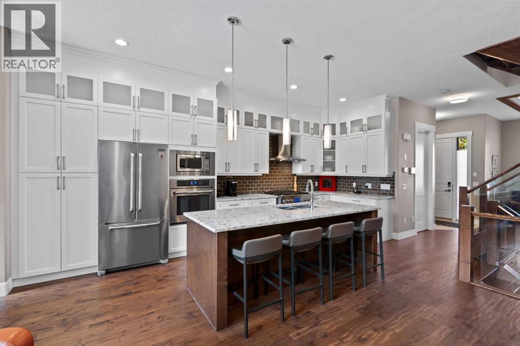 Welcome to this exceptional home in the highly sought-after community of Mount Pleasant, offering more than 2,600 sq. ft. of beautifully finished living space crafted for both comfort and style.Main Level --Step inside to an inviting open-concept main floor with oversized windows that flood the home with natural light. The space features gleaming hardwood floors, a striking open-rise staircase, family room/office space and a sophisticated dining area. The spacious living room is anchored by a stone-faced fireplace with a built-in Rus sound system, creating a warm and elegant gathering space. The gourmet kitchen is a chef’s dream, equipped with a 6-burner gas stove, built-in convection wall oven, quartz countertops, abundant cabinetry, and a large central island—perfect for entertaining and everyday living.Upper Level --Retreat to the luxurious primary suite, complete with a tailored walk-in closet, built-in speakers, and a luxury 5-piece ensuite featuring dual vanities, a jetted tub, a large steam shower, and in-floor heating. Two sizable additional bedrooms, a full bath, and a convenient upper-level laundry room with built-in storage complete this level.Lower Level --The fully developed basement extends your living space with in-floor heating, a large rec room with a built-in, a wet bar with beverage fridge and built-in wine holder, plus a fourth spacious bedroom, full bath with large shower, and ample storage. The home is equipped with central air conditioning, a large water heater, and a new roof (2022) with upgraded attic vents.Outdoor Oasis --Step outside to your private backyard retreat, featuring a large composite deck, built-in hot tub, professional landscaping, and a 10' x 6' shed with skylight designed by Shed Solutions. The double detached garage is insulated, drywalled, painted, and finished with an epoxy floor and 8-ft door.Prime Location --This exceptional property is ideally located just minutes from Confederation Park, Mount Pleasant Art C entre, University of Calgary, Nose Hill Park, golf courses, the Winter Club, and an array of local shops and cafes. Families will love being within walking distance of schools, parks, and playgrounds, with an easy commute to downtown. This beautiful Mount Pleasant home has it all—modern design, thoughtful upgrades, and an unbeatable location. Don’t miss your chance to make it yours! (id:6769)